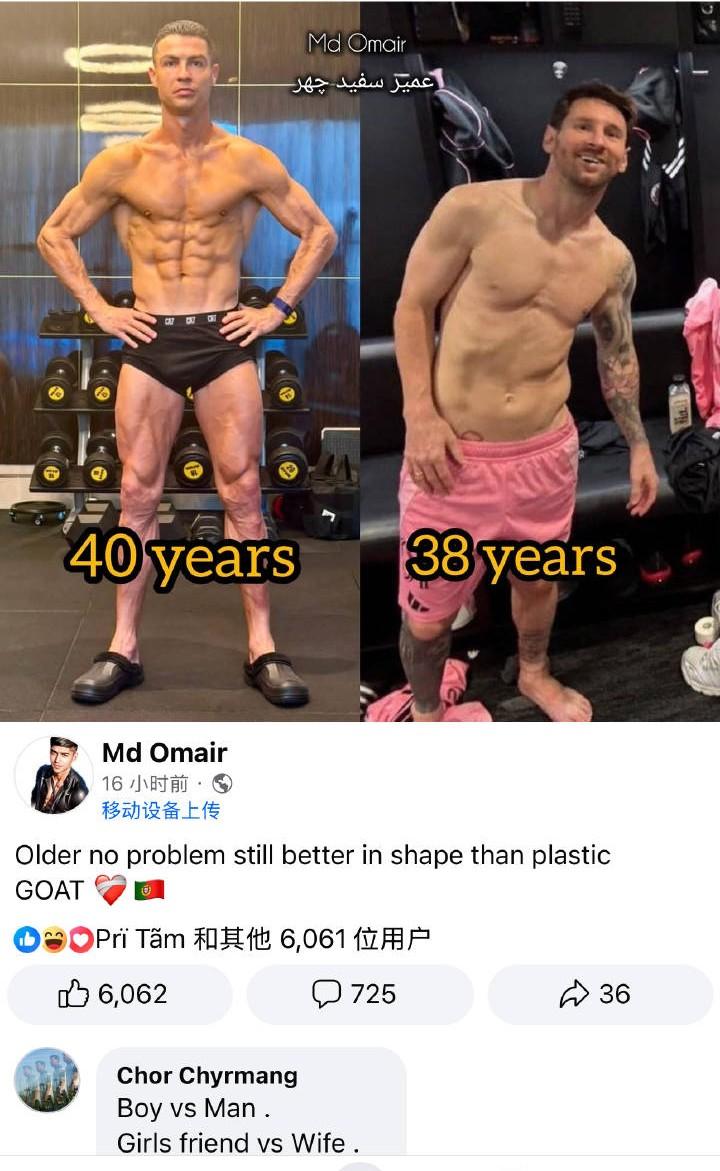 看了他们的肌肉就知道谁是球王! 梅西的肌肉就是一滩死肉,罗哥的肌肉才是一整个活肉……