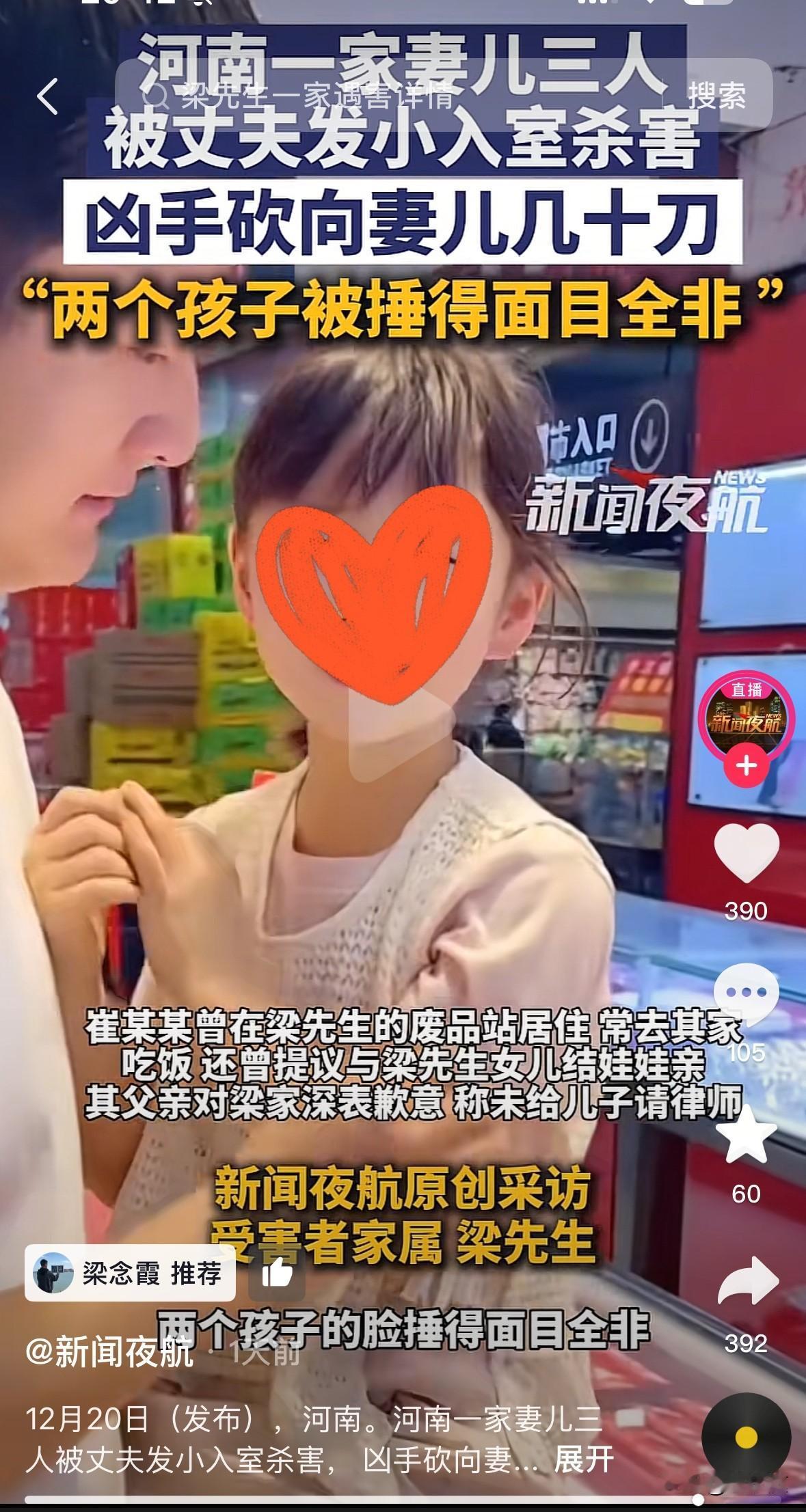 入室杀害发小妻儿三人的崔某自作聪明,以为查不到他身上,殊不知受害者指甲里留下的DNA很快就让他无所遁形! 悲剧是2025年7月26日发生的。 崔某在案发当晚,避开监控,从地下室走上楼梯,还特意用帽子、口罩等物品将自己遮挡的严严实实,另外,他的手上也戴了手套。 他用提前配好的钥匙,打开了梁先生的家门。最终,梁先生妻儿三人被杀害! 那么,警方是如何快速锁定他的? 最大的原因,在于他事后行为非常反常。 身处外省的梁先生在次日无法联系上妻子后,便委托崔某上门查看情况,可崔某却一直找借口推脱。 梁先生家人确定他妻儿三人遇害后,他再次致电崔某,并告诉他自己妻儿被害了,可崔某却故作淡定说了一句“怎么可能?” 过后,他带了另外两个共同的朋友赶往现场,全程30公里左右的路程,他显得很反常,一直在反复找朋友要烟抽。 到了梁先生家后,他表示自己同受害者家属是发小,并当着警方的面打电话给梁先生,要梁先生提供他妻子的手机密码。 他只是梁先生的发小,平白无故,为什么要问对方妻子的手机密码呢? 如此反常的行为,当即引起了警方的注意!加上他身上带有伤痕,于是,他被列为了嫌疑人。 很快,经过一番查证,警方又在他货车后座上找到了受害者的金首饰。如此一来,真相已经差不多呼之欲出。但真正让他无所遁形的是受害者反抗时指甲里留下的DNA,那成了指控他最关键性的证据! 崔某自作聪明,本以为可以瞒天过海!可若要人不知 ,除非己莫为啊! 在这个事件背后,梁先生一家真的是太让人心疼了,他们对崔某那么好,此前经常带他回家吃饭,可他却偷偷配了他家的钥匙。值得一提的是,当晚,崔某杀害梁先生妻儿前,还在和没事人一样同他聊天! 经此一事,说明了一个道理:无论是什么关系,都要保持一定距离,不可过度信任他人,凡事要有防范之心! 同时,也警示大家:做人要有底线,要懂得感恩,不要去做坏事,因为天网恢恢 疏而不漏!