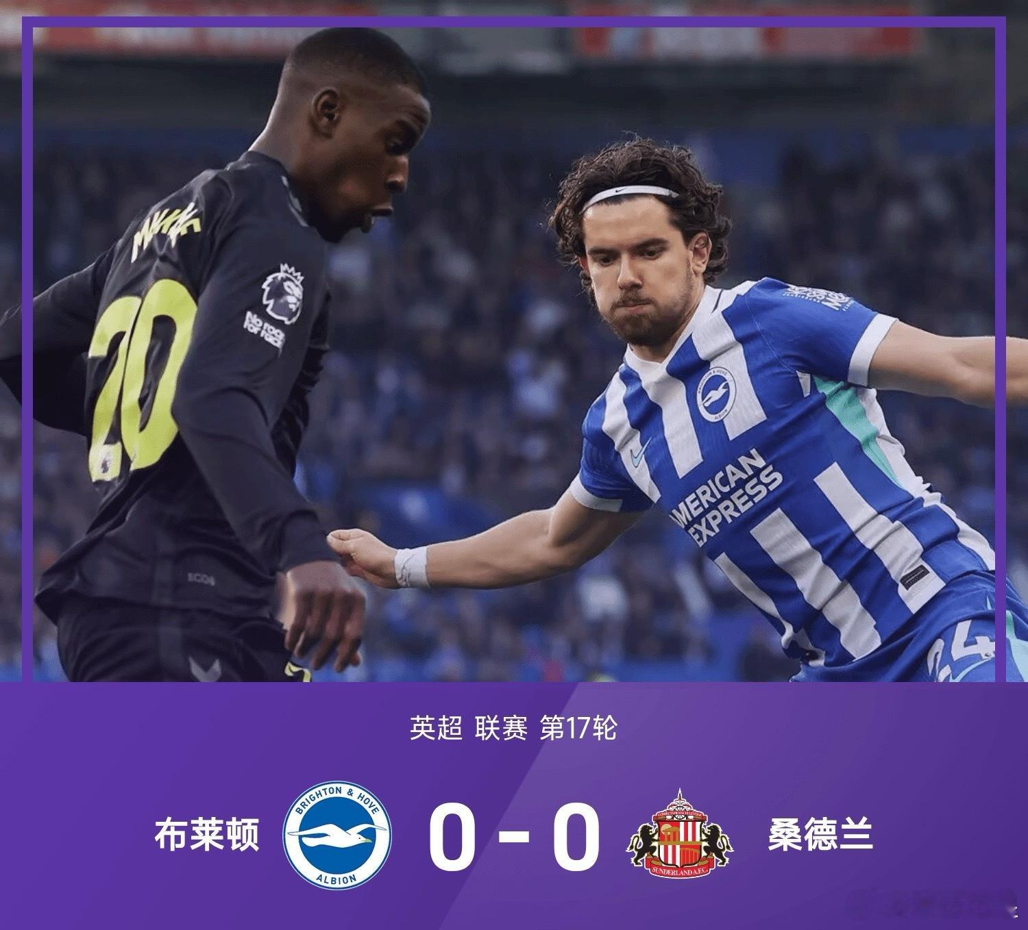 25/26赛季 第17轮, 0-0互交白卷闷平 。上半场布莱顿开场获良机,魏费尔头球攻门被惊险扑出。下半场开场桑德兰同样获得机会,阿尔德雷特头球攻门同样被门将化解。最终,双方均无建树,布莱顿主场0-0闷平桑德兰。