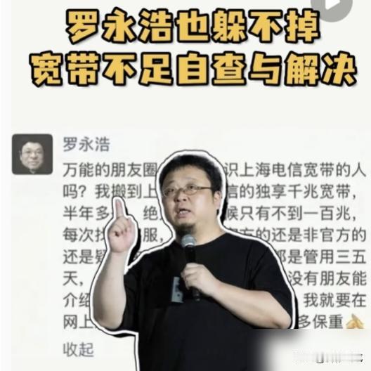 上海电信这回应是把人当弱智糊弄?甩锅户型路由器?合着罗永浩一个搞科技的,连个千兆路由器都配不起是吧? 交着千兆的钱,半年多蹭着百兆的网,报修跟按了重启键似的,好三天就打回原形,这哪是宽带,是定时失效的体验卡?拿着用户的钱吹基建第一,结果带宽共享到高峰期挤成地铁早高峰,脸呢? 别洗了,黑猫投诉里一堆同款冤种排队哭呢:签约上行被砍、测速造假、投诉绕三圈没人管,这吃相比西贝的定价还难看。 要么退钱,要么把千兆焊死在用户家,装死没用!