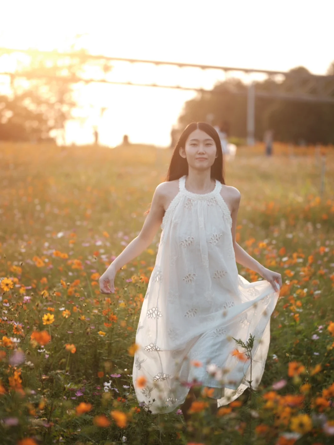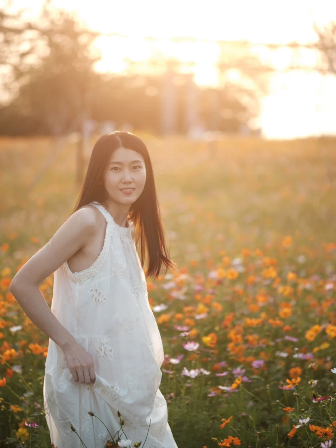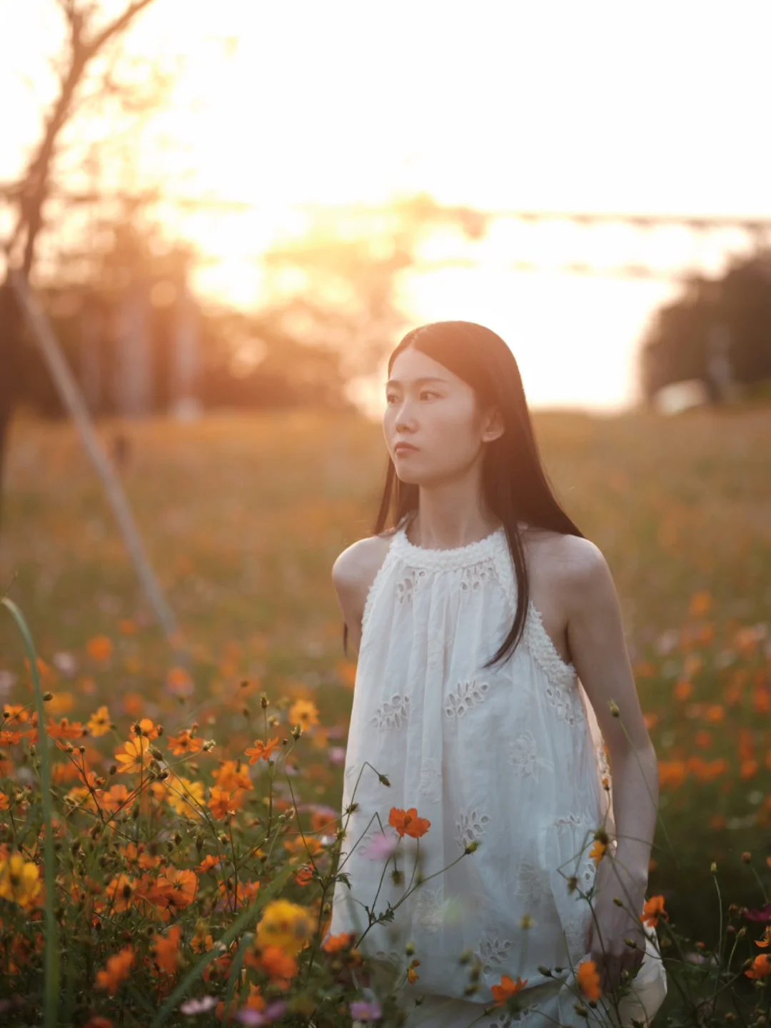 清吟晓露叶,愁噪夕阳枝 夕阳🌇🌇下花海的宁静就像是灵魂的慰藉,感到一种温柔的感觉席卷了我。 傍晚六点🕕这时候的光线柔和而不失明亮,当影子被拉长,橘黄色的夕阳洒在橘黄色的花海上,仿佛掉进了梦幻般的橘色海洋。 一向热衷于夕阳的我,看到这样的场景,是前所未有的兴奋及热情。 这里是乌洲水闸 ,在广州番禺江对面顺德的一个比较小众的地方,就算是节假日,这里人也不多,非常好出片 这片花海就在江边的小路旁,小路的另一边是一排排的落羽杉🌲🌲 📍地点:乌洲水闸 🚇交通: 1️⃣佛山地铁三号线:伦教站出来打车6公里 2️⃣广州地铁三号线:市桥站出来打车19公里 3️⃣自驾直接定位【乌州水闸】,道路旁边可以免费停车 👗服装:尽量浅色系的裙子,在傍晚的花海,穿浅色系的衣服会跟背景拉开对比,就算是在一大片花海里面,人物一下子就跳出来了 📷拍照: 1️⃣这次带的镜头是腾龙17-70f2.8以及适马56f1.4,不过最出片还是适马56,有条件的小伙伴尽量带个大光圈的镜头吧。手机拍照的小伙伴,可以打开手机的人像模式,光圈(f)调到最大(iphone的是在右上角“f”的标识)。 2️⃣摄影师可以利用一部分花当前景,拍摄逆光的小伙伴,可以利用模特的头发挡住太阳,有条件的小伙伴记得带一块反光板噢 3️⃣拍照动作:日落和花朵给人的感觉是“温柔”、“宁静”、“快乐”、“自由”的,模特可以代入一下情绪噢,多与花朵互动一下,抚摸它们或者闻一下它们的香味。还可以做一些像“旋转”、“跳舞”或“奔跑”之类的动作,还可以尝试一下情绪风的动作,比如“发呆”“若有所思”之类的 [清单R]小Tips [一R]尽量选择一个比较大太阳的天气,傍晚的时候到达就好了,拍照的黄金时间段是下午5:30——7:00 [二R]户外蚊虫会比较多,小伙伴们要注意携带驱蚊水,花露水,同时也要做好防晒 [三R]周边有大草地,以及江,非常适合钓鱼、露营、亲子游
