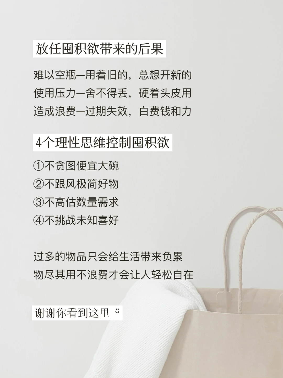 控制囤积欲,理性消费,没有匮乏的焦虑,存下的钱让我有了更多安全感。认真消耗,记录空瓶,慢下来关注自己的感受,也为下次决策节省时间精力。