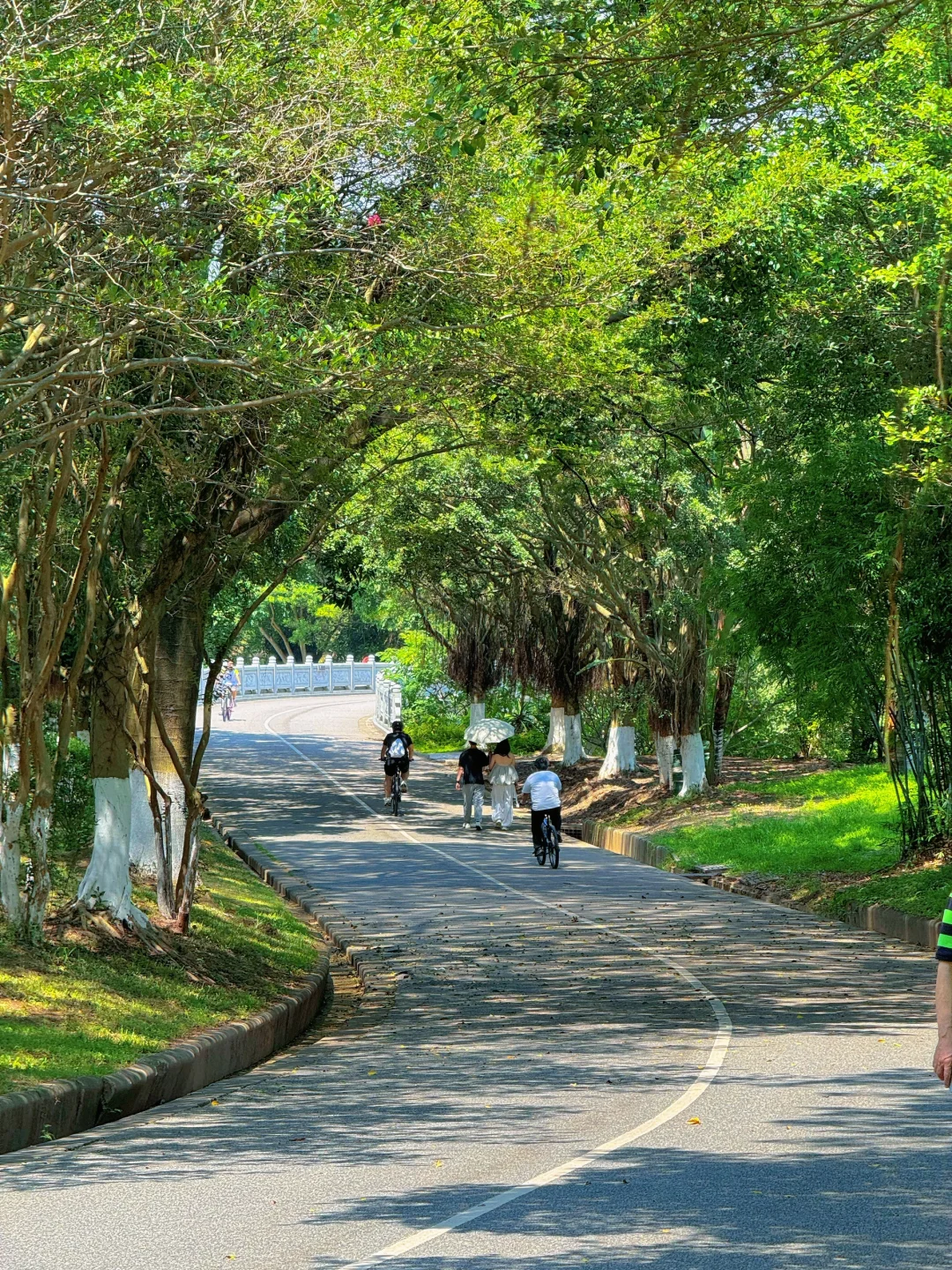 当骑车🚴🚴穿过绿道的第一寸树影时☀️☀️我听见蝉鸣撞碎阳光的声音