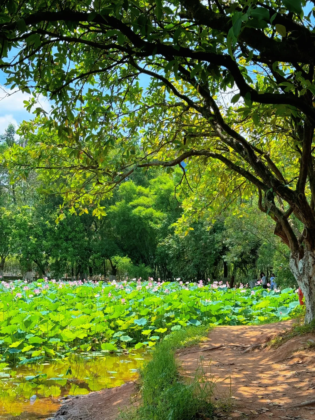 🔹赏荷点: 北门进去不远(晴云湖方向一直走)就有大片荷花,南门也有一片不过没有北门开得多