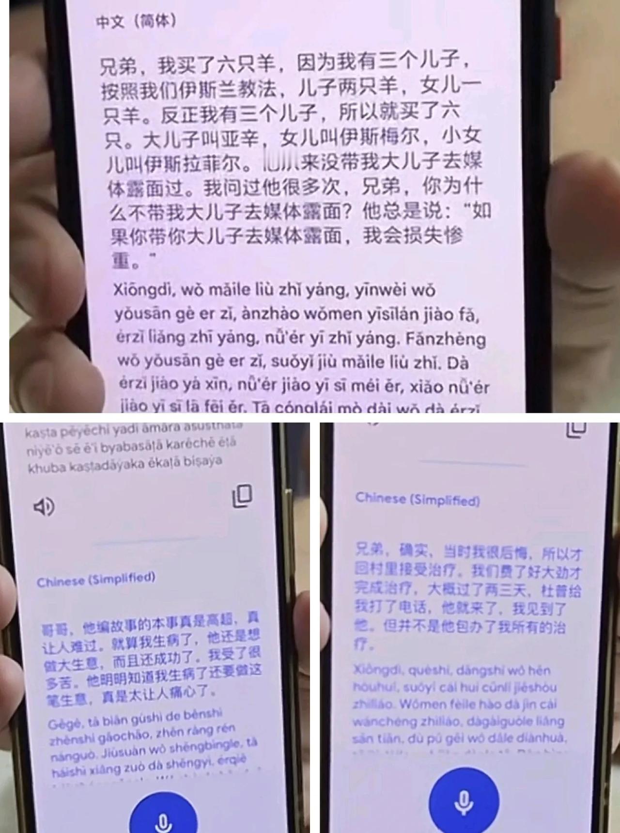 今晚刷到了孟加拉“一哥”在某博主的账号里拍了视频回应,真的有被震惊到,怎么可以反目成这样子?在背后说杜克,我觉得再怎么样,曾经也是特别真诚的两个人,互相真心对待过,就算以后不再和以前那样相处了,也不能在背后这样嚼舌根吧? 视频里可以看到背后的墙上,有一张特别惹人注目的“两人合照”,其中杜克的脸好像被一张很大的白纸给挡住了!这是不是在有意传达什么信息? 而且镜头还拍到了一哥的儿子,这个儿子是首次出现的镜头前吧?然后一哥的这个儿子,注意他的眼神,还有意往墙上看了一眼。哎,看了心里不是滋味。 看看(图二),是视频里一个回应后,手机翻译的截图,可以看出一哥不满,或者他不理解杜克为什么不让他大儿子出现在镜头前,说杜克回应,如果他大儿子出现在媒体的面前,杜克会损失惨重的。(这里有点不理解,不知道是一哥误解了杜克的意思,还是两人沟通上出现问题。) 然后,还直指杜克编故事的本事是高超,看到这里,我简直感到不可思议,这话竟然从一哥嘴里说出,这是完全否定了杜克的好? 还有关于杜克之前回去他老家“救他”的事,他回应,否认杜克并不是包办了他所有的治疗。 看到这里,我不知道杜克如果刷到一哥在别人视频里这样子说他,会不会心都碎了。。 还有最后一个问题,就是那名博主问一哥,大家经常听到的那句“上帝不如我兄弟”,到底是不是一哥说的,还是其他原因,还是谁说的。 一哥回应道:这句话不能这么说,上帝派你来做我的使者,这是我莫大的荣幸,我就是这么跟他说的。然后,一哥还说,他不可能讲这句话,他永远不可能说杜克比上帝还伟大, 任何人都不可能这么说! 最令人窒息的是,一哥说完这些话,还“补上一刀”,说这是杜克自导自演的一出戏,哎! 看完那两个回应的视频,感慨万千,我想到杜克和一哥的关系可能回不到从前了,但没想到,会“破裂”成这样,“他自导自演的一出戏”,我是没想到这句话会出自一哥的嘴里!一言难尽! 最后,再说说我的看法吧,这一件事,由于杜克也还没回应,针对一哥说的这些事,我们也不好定义谁好或者谁坏,或者根本就没有所谓的坏人,也许这就是人性吧!只是觉得,两个人曾经那么真心对待过彼此,不至于要现在这样去“攻击”对方,好聚好散吧!大家怎么看?