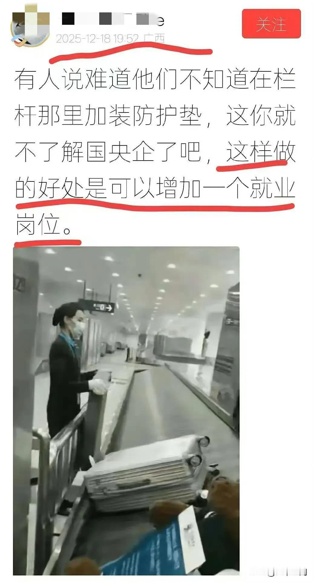 土殖的基操,同样的事情放在国外就是各种夸奖,各种赞美,如果是放在国内,它们就会想尽一切办法来抹黑或者引导到负面的地方去! 比如在日本机场的行李箱传送带上安排了一个地勤专门接住行李箱,防止撞击护栏,土殖夸赞是细节决定素质,还说国内机场没有这样的,不比不知道,一比才知道文明礼貌服务跟日本差很多!其实不是国内没有,也有这样的安排,同样的事情,土殖说这样做就是为了增加一个就业岗位! 其实这就是土殖的话术,好多事情,它们都是这样来外捧内踩的,大家平时注意观察各种评论区,很多土殖这样操作的!