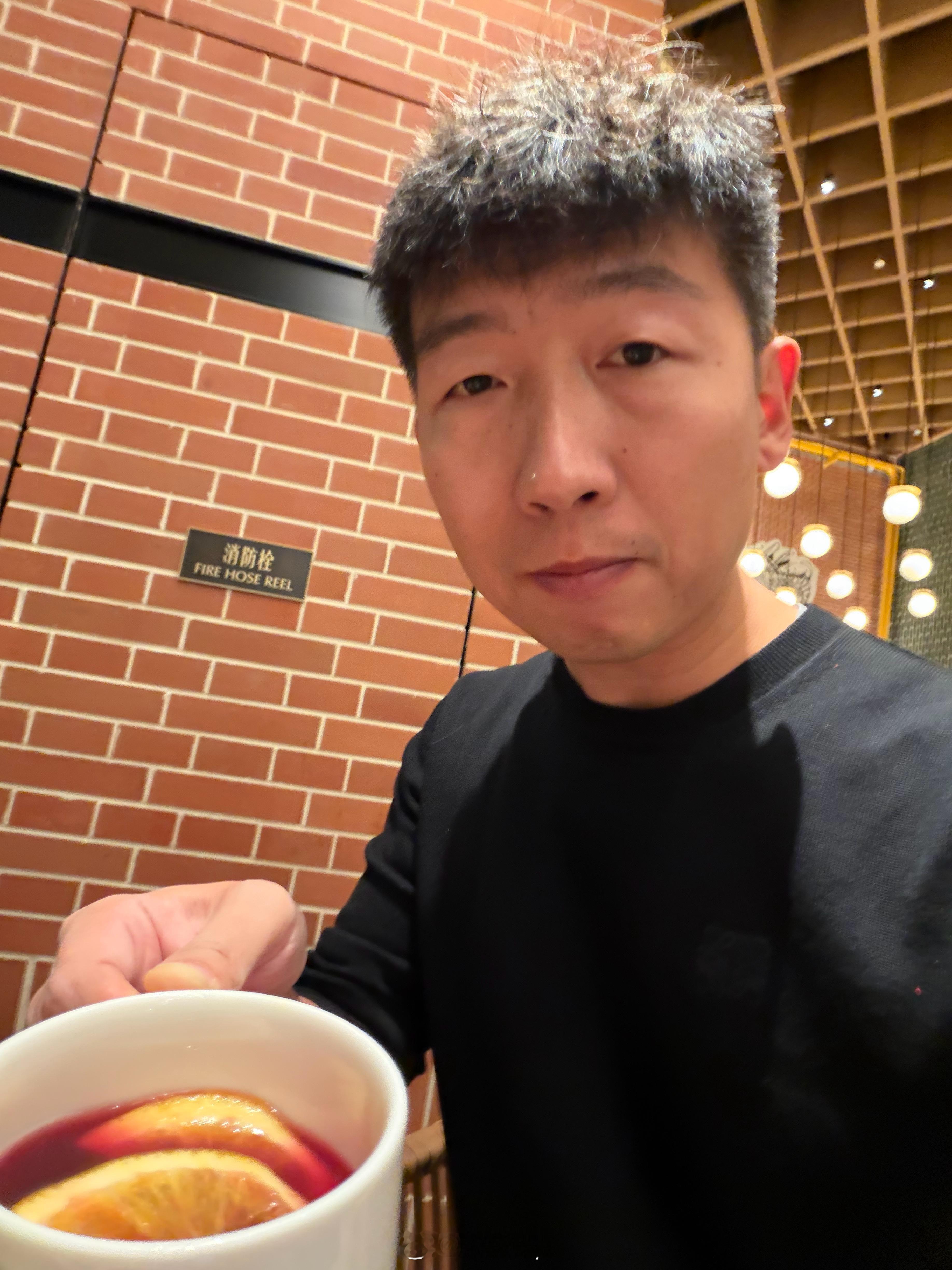 刚刚餐厅服务员看我长得和刘亦菲太像,主动推荐我尝一下今晚特饮热红酒,没想到年近 40 还能靠颜值吃饭 上海·上海前滩香格里拉