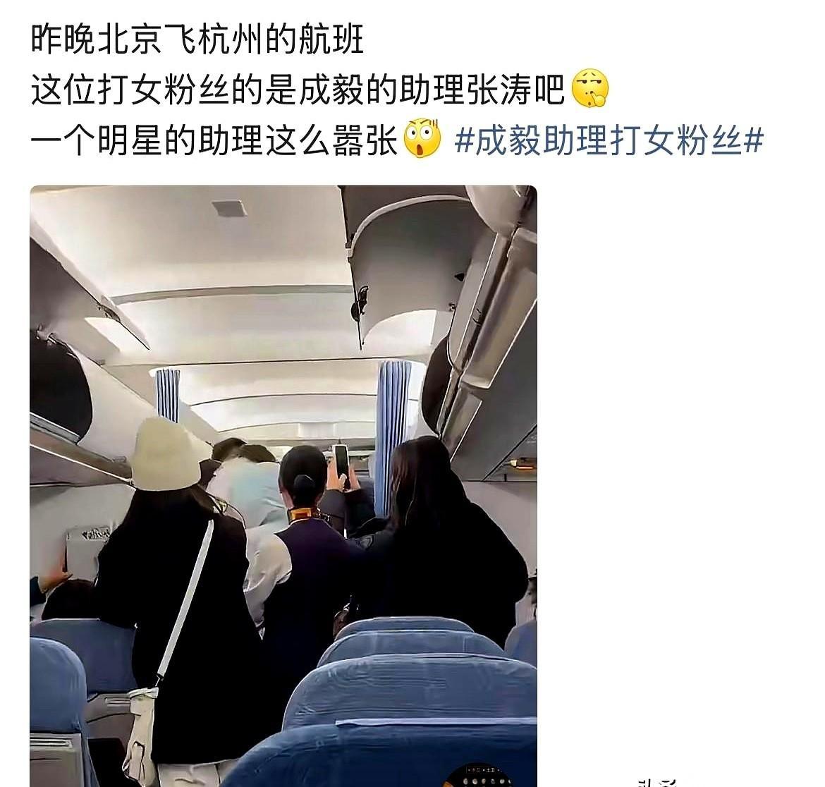 我天,飞机上直接动手了。 助理那巴掌到底是冲着手机去的,还是冲着人去的,已经不重要了。 重要的是,他动手了。 在一个密闭的,天上飞着的铁皮罐头里。 说实话,我隔着屏幕都替他尴尬。 那姑娘也是真头铁,空乘的地盘,跨舱去拍明星,助理脸都憋红了,求爷爷告奶奶地让她坐下,就是不听。 就跟没听见一样,手机举着,人往前拱。 我有时候就在想,这到底是种什么样的“爱”? 这种爱,让你忘了公共秩序,忘了基本礼貌,忘了你偶像本人可能尴尬得脚趾都能抠出一套三室一厅。 助理那一巴掌下去,肯定是错了,没得洗。 但在那个瞬间,我猜他脑子里就一根弦,就是“保护”,就是“职责”,然后那根弦,“啪”地一下,断了。 他想打掉的是那个没有边界感的手机,结果,失控了。 整件事里,最窒息的是谁? 成毅。 他能说啥?他啥也说不了。一边是“爱你爱到发疯”的粉丝,一边是替他挡在前面的助理。 这哪是追星啊,这简直是上刑。 喜欢是放肆,但爱是克制。 这话用在这儿,真是再合适不过了。