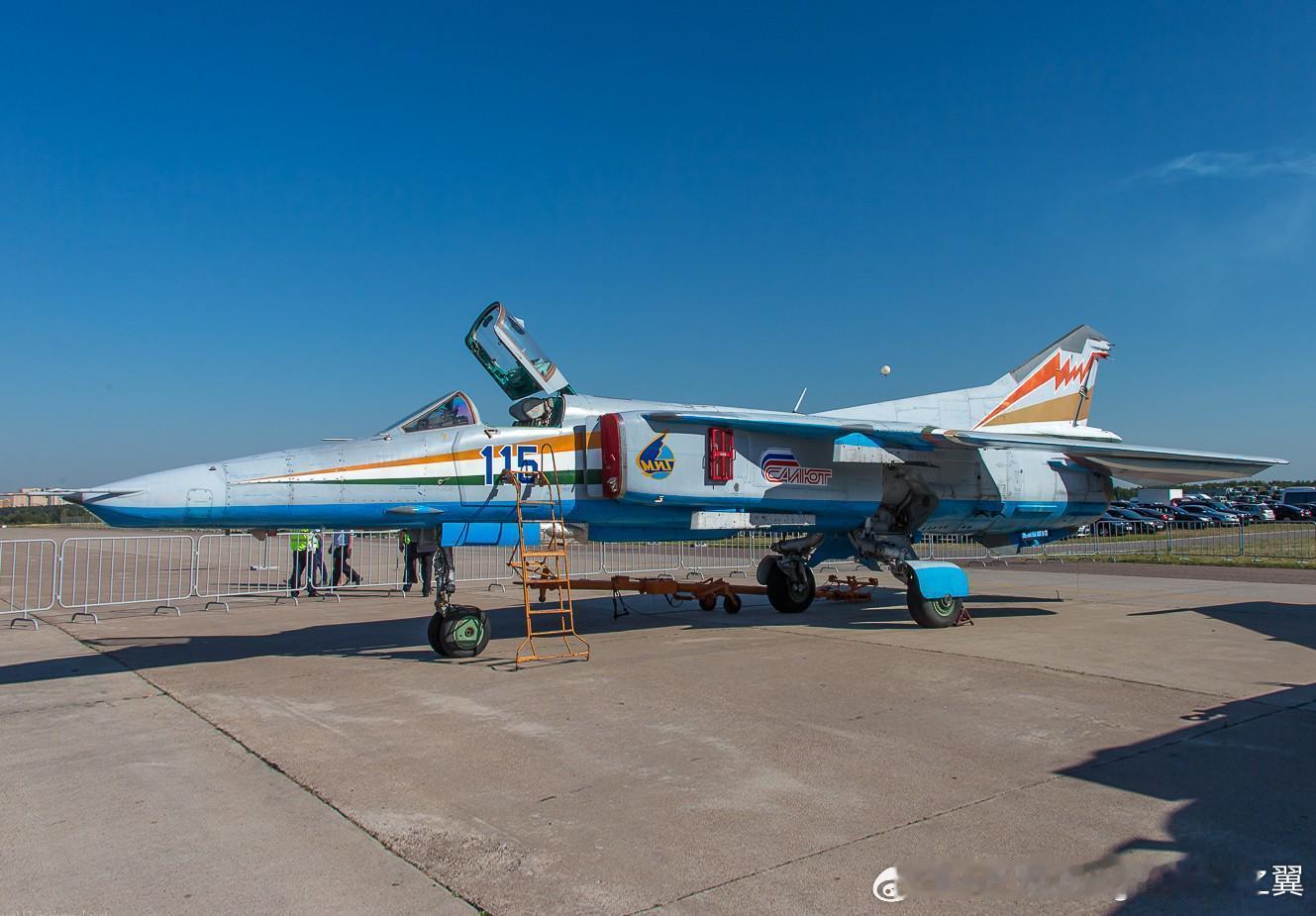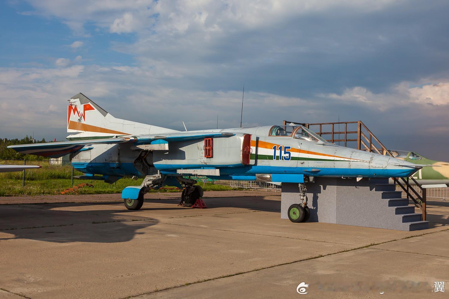 世界上唯一安装AL-31F发动机的米格-27,俄罗斯为了印度空军现代化升级计划而研制的实验原型机,编号为115号(也被称为米格-27MLL或米格-27LL)。烽火问鼎计划 每天认识一件新兵器 21纪初,印度空军为其米格-27“勇士”(Bahadur)机群寻求升级方案,旨在解决原装R-29B-300发动机不可靠且油耗高的问题。该机换装一台专门为单发机型优化的AL-31F-30S涡扇发动机。相比原发动机,推力增加了约1吨,重量减轻了200公斤,且燃油消耗降低了约15%-20%。该原型机于2007年底至2008年初在莫斯科郊外的茹科夫斯基机场由米高扬设计局进行了飞行测试,共完成10次飞行。尽管测试证明换装AL-31F后米格-27的作战效率提升了22%-27%,且具备了一定的“超音速巡航”潜力,但由于成本高昂及机体老化等原因,印度最终取消了该升级计划,转而选择直接退役米格-27机队。这架唯一的原型机目前仍存放在俄罗斯的茹科夫斯基机场。