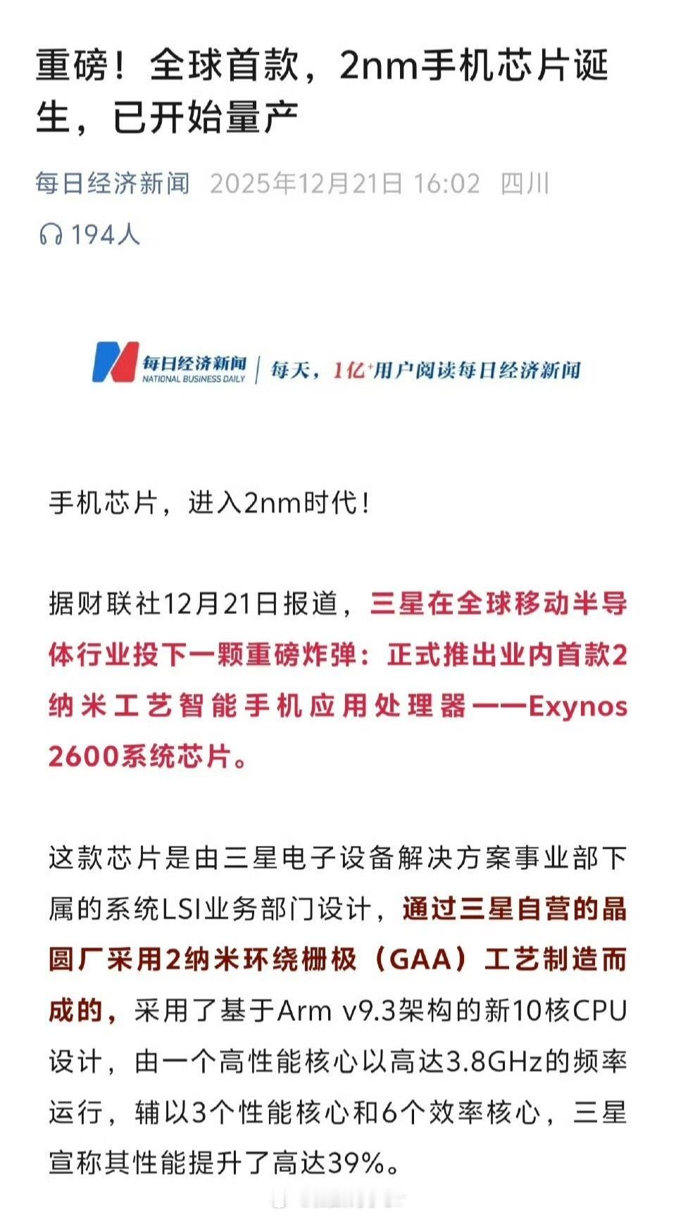 三星推出全球首款2nm手机芯片不管三星手机国内销量如何但人家的硬实力你确实得服,