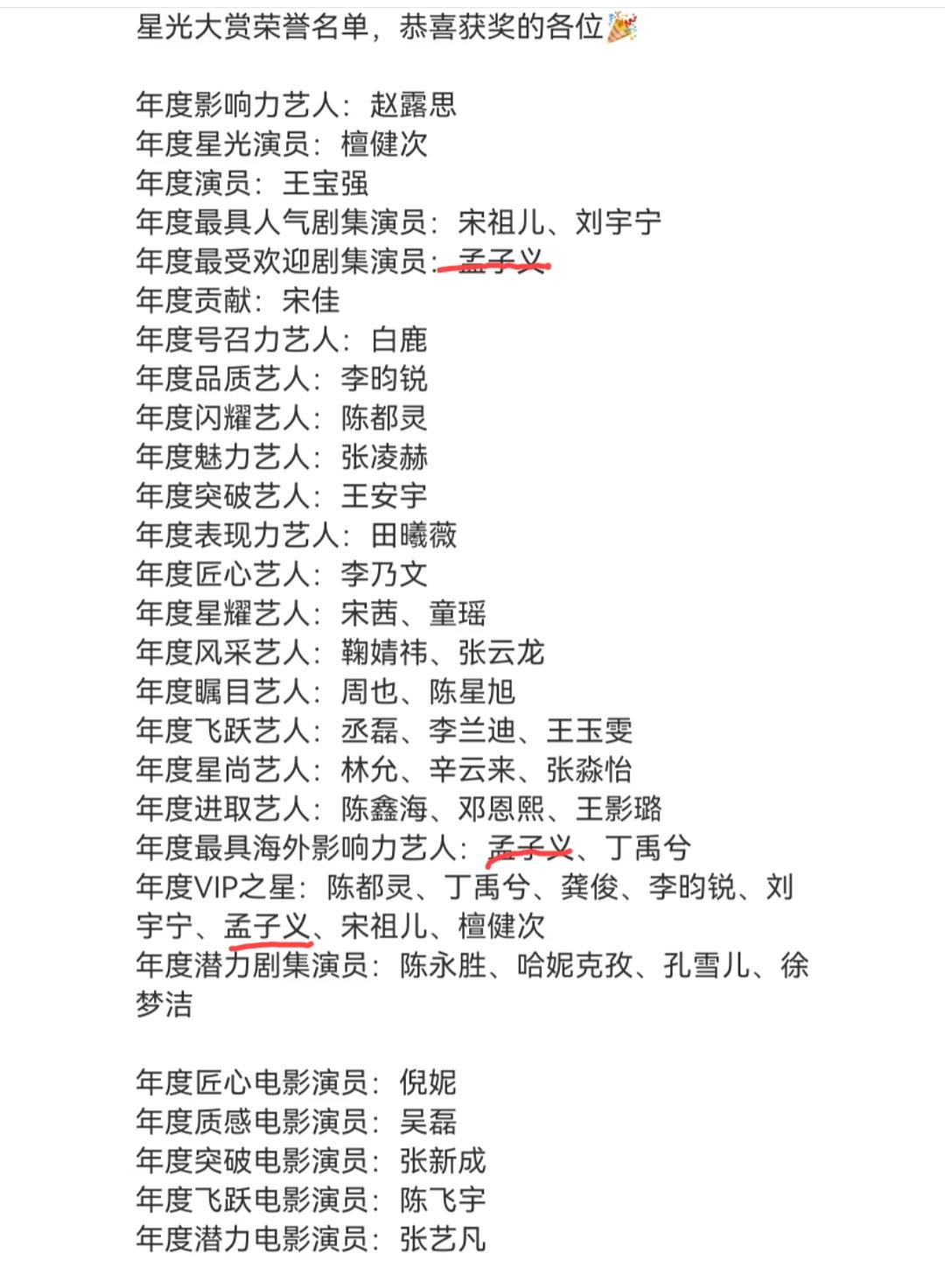 孟子义成“腾讯星光大赏”最大赢家,无论是昨天的上台环节还是最后的颁奖环节,一大半