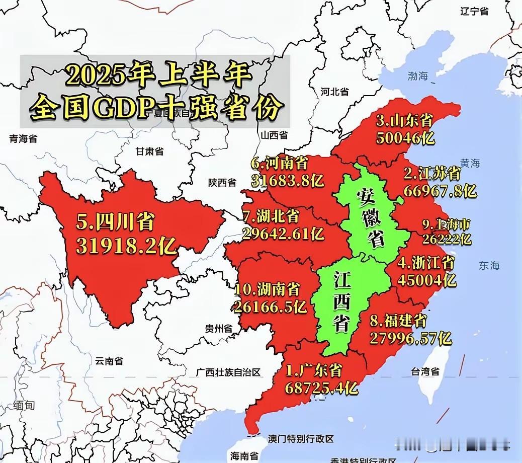 你看这张中国经济版图,活像一只雄鸡,可右下角那一片红得晃眼——广东、江苏、山东这些经济大佬扎堆儿,热得发烫。但就在这雄鸡肚皮上,江西和安徽这对“兄弟省”却像被遗忘了似的,还是青青的颜色,没沾上那抹红。 安徽现在可算喘上口气了,排第十一名,GDP两万八千亿,跟前面的湖南“老表”咬得紧紧的,半只脚已经踩进十强门槛,眼瞅着就要挤进去了。可江西呢?还排在十五名,虽然GDP全年有三万多亿,但离那圈红还差着一截,路看着更漫长,甚至不如一个深圳市。 这地图上的颜色一深一浅,说透了咱们国家发展的心事:沿海地方吃了开放的红利,风生水起;可内陆的兄弟省份,像江西、安徽,还在吭哧吭哧产业升级,摸索自己的路。安徽挨着长三角,近水楼台,这两年搞科技、聚企业,势头起来了;江西呢,虽然也在拼,可总觉得慢半拍,憋着一股劲。 这不光是数字游戏,它牵动着千万普通人的生活——年轻人是留是走?家乡有没有好机会?区域不平衡的阵痛,其实就在你我身边。眼看着地图上这块“留白”,它既藏着中部崛起的希望,也提醒我们:共同富裕的长路,还得一步一步扎实走。也许有一天,这片绿色也会慢慢染红,但那需要时间,更需要实实在在的转变。