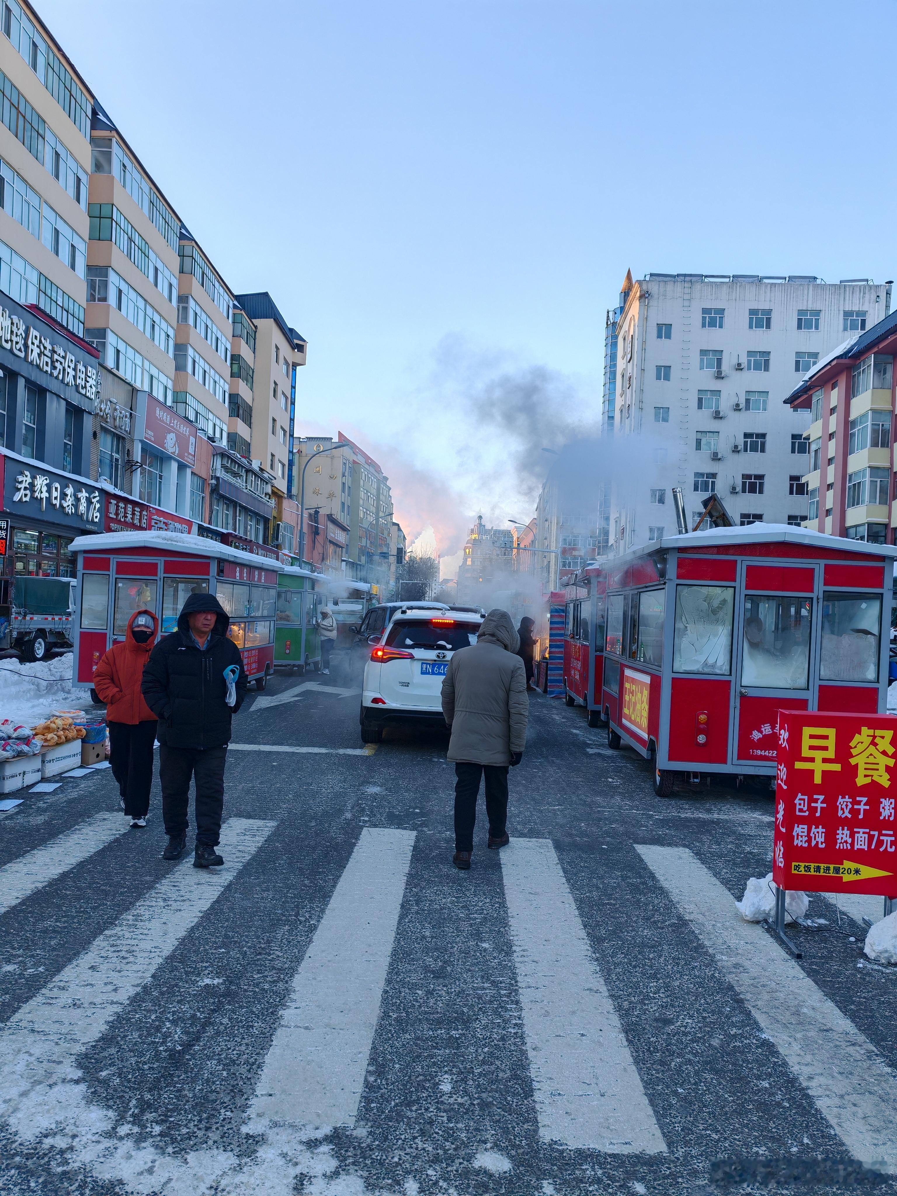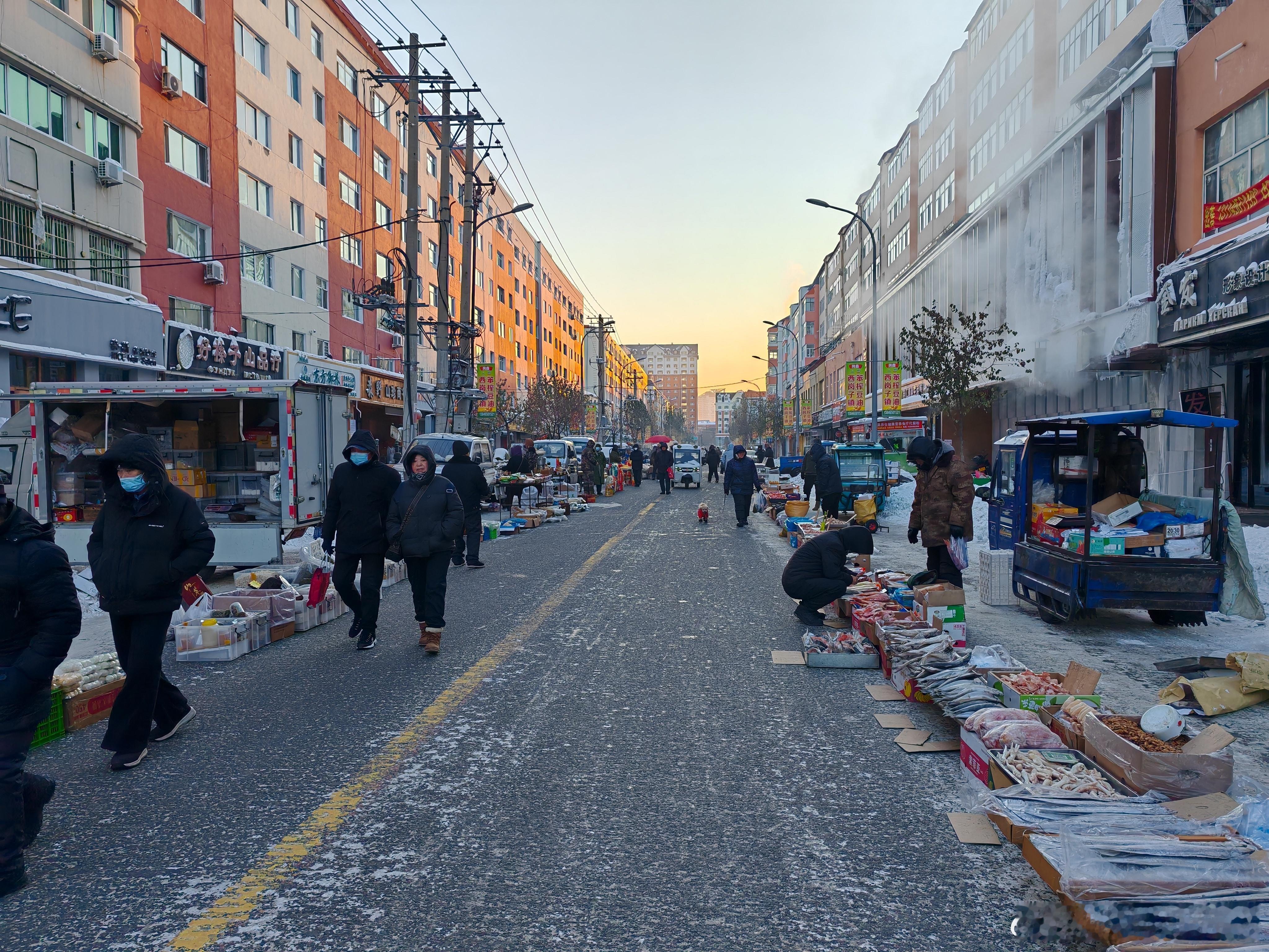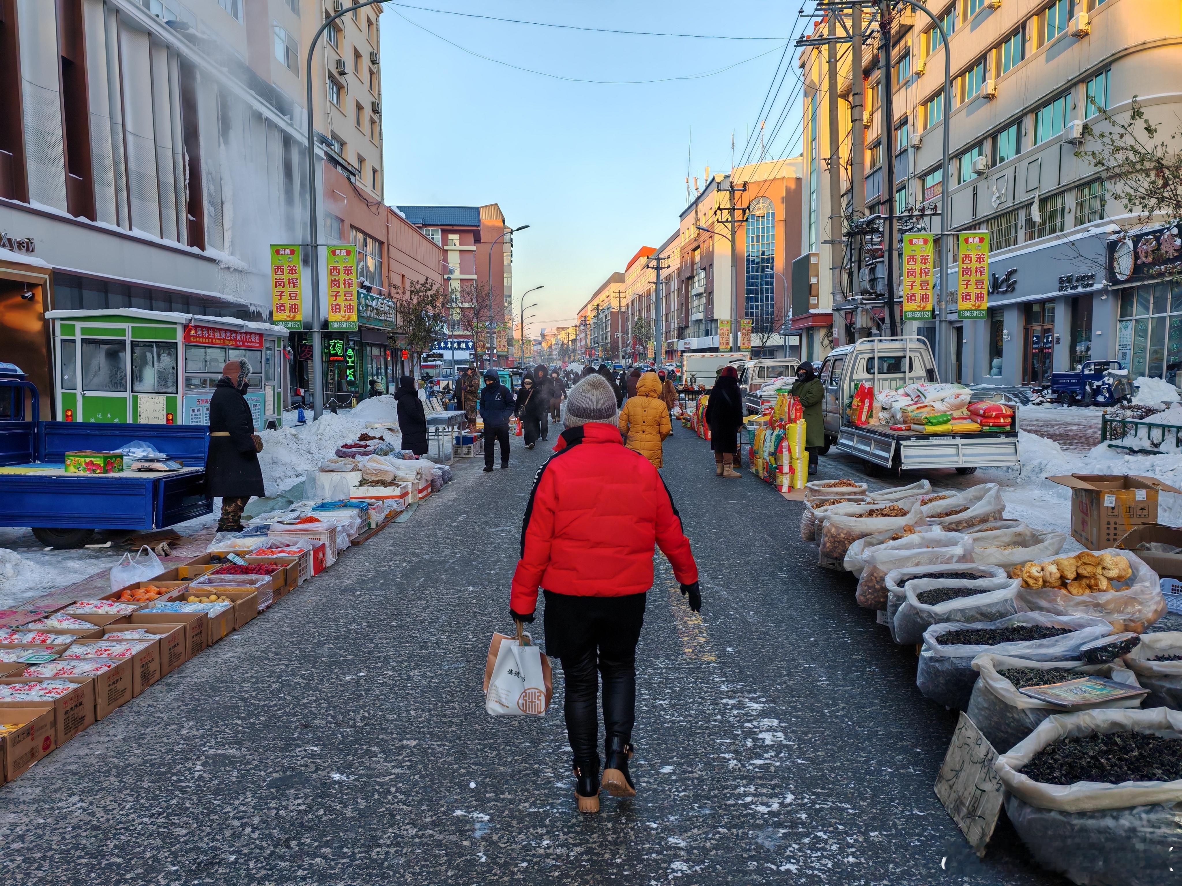 感受黑河早市的烟火气,买了俩冻梨,零下三十度真不是南方人受得了的,赶紧打车回酒店。 黑河