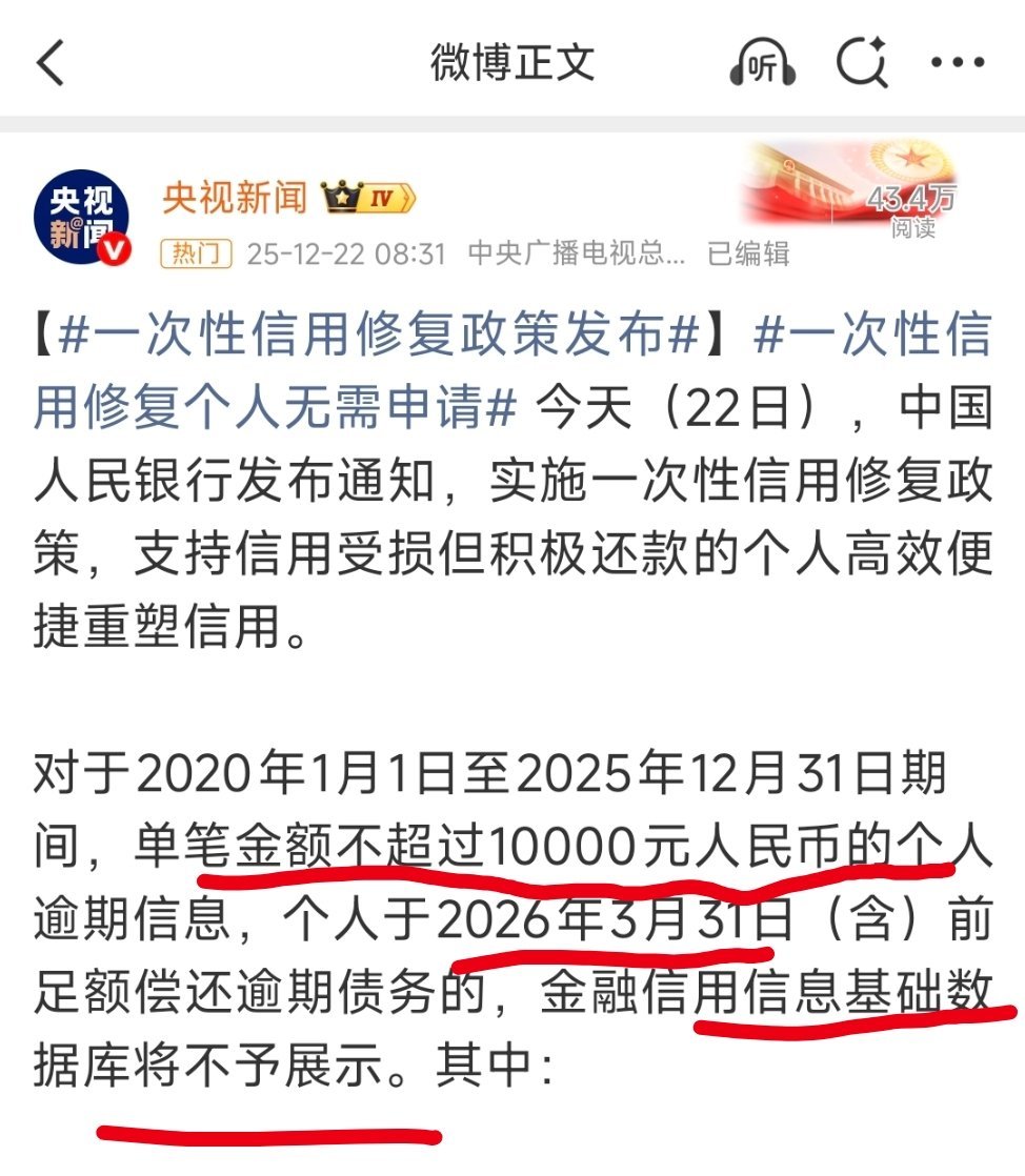 支持个人信用重塑单笔不超过一万的逾期记录,明年4月份之前还上了就不展示征信了。等于是给那些征信还没有坏到彻底一条道走到黑的人一个回头是岸的机会吧。