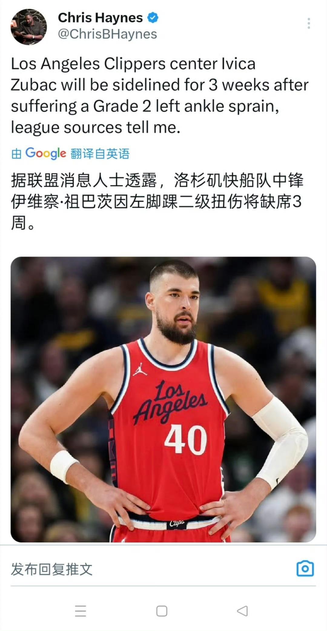 快船季后赛没了——祖巴茨左脚踝2级牛使用,伤停至少3周! 泰伦卢35胜20负豪言仅完成一场就被詹姆斯终结了,难怪孙悦说他不经意间贡献了最成功的一次防守。 3周至少10场比赛,没他快船怕是很难了。谁能想到引进各种强援的快船会这么拉垮。 哈登怕是要被交易了,我觉得森林狼挺适合他的。