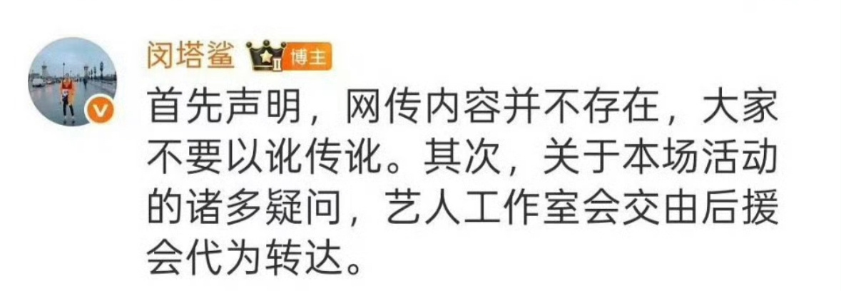 天嘞好尴尬人家闵塔鲨亲自出来辟谣了裙子出现的网传各种信息都是假的