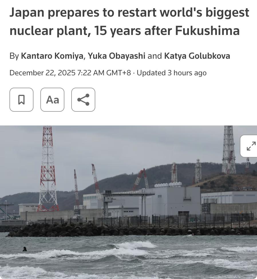 外媒:日本新潟县预计将在12月23日投票支持重启全球最大的核电站柏崎刈羽核电站,这是自2011年福岛核事故后日本重新拥抱核能的重要时刻。 该核电站位于东京西北约220公里处,曾在福岛事故后与日本其他53座反应堆一同关闭。日本目前已有14座反应堆重启,柏崎刈羽核电站若重启,将是东京电力公司(TEPCO)在福岛事故后首次运营核电站。 尽管日本政府希望通过重启核电站减少对进口化石燃料的依赖,但当地居民对重启仍心存疑虑,调查显示60%的居民认为重启条件未满足,近70%担心TEPCO运营该核电站。