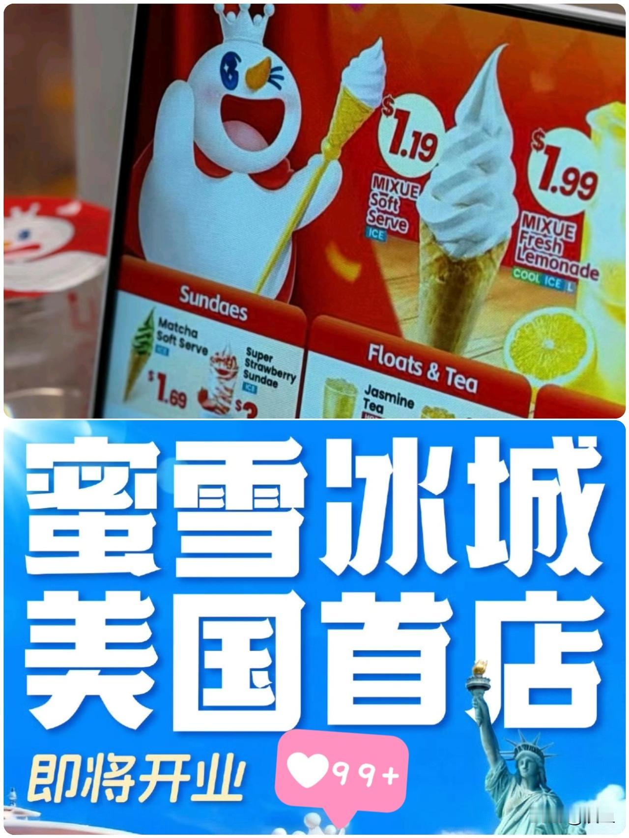 打不过你,我就加入你!蜜雪冰城杀进美国,直接把“甜”玩出了新高度。 蜜雪冰城进军美国,不仅仅是品牌出海的象征,更是带着东方大国饮品特有的超高甜度而来。 为了迎合美国消费者,蜜雪冰城推出了比100%还要高的甜度,比如说120%、200%的甜度,让人惊艳不已。 在美国,尤其是在好莱坞星光大道这种地方,1.19美元(大概8块多人民币)能买到一个招牌冰淇淋,柠檬水也才1.99美元,这价格对比动辄5、6美元起步的星巴克或其他本土奶茶品牌,确实很有杀伤力。 更夸张的是,国内几块钱一杯的柠檬水在美国要卖几十上百人民币,但仍然有很多人排队购买,因为这是“打卡”!蜜雪冰城走进美国最大的原因就是“甜”两个字,甜在美国人的心里。 它把握住了外国消费者的口味,做到了“入乡随俗”,这也是它成功的一个重要因素。
