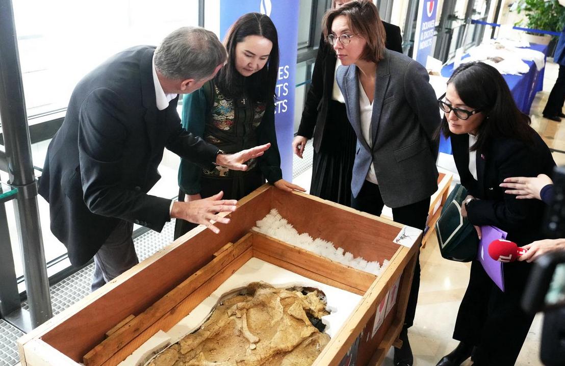 法国向蒙古移交7000万年前的恐龙化石 本月初,法国正式将一具7000万年前的暴龙骨架归还蒙古。2015年,这具骨架因被非法运出蒙古的戈壁沙漠,而被法国海关官员没收。 被视为霸王龙亚洲近亲的暴龙骨架,是一件"极其罕见"的标本,它曾被走私出蒙古,途经韩国,最终在法国中部被法国海关查获,当时其估值约为70万欧元(81.2万美元),但专家指出,其市场价值现已大幅攀升。除了这只恐龙,还有几只恐龙蛋化石也被归还,它们都将被送往蒙古计划不久开放的新博物馆。 蒙古计划对这些失而复得的化石进行研究、修复,并将在博物馆中展出。长期以来,蒙古一直在与戈壁沙漠化石的非法交易作斗争,称其领土上发现的所有化石都是国家财产。