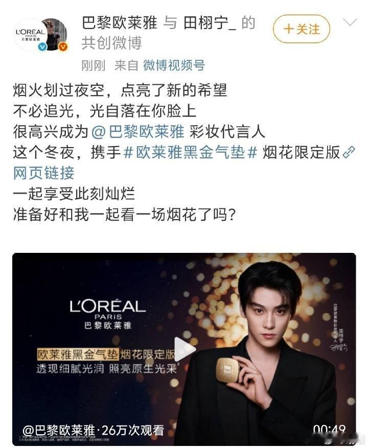 田栩宁成为巴黎欧莱雅彩妆代言人 一整个尖叫!田栩宁解锁巴黎欧莱雅彩妆代言人身份,品牌眼光也太毒了!已经开始期待和他一起奔赴这场烟花之约,未来可期!
