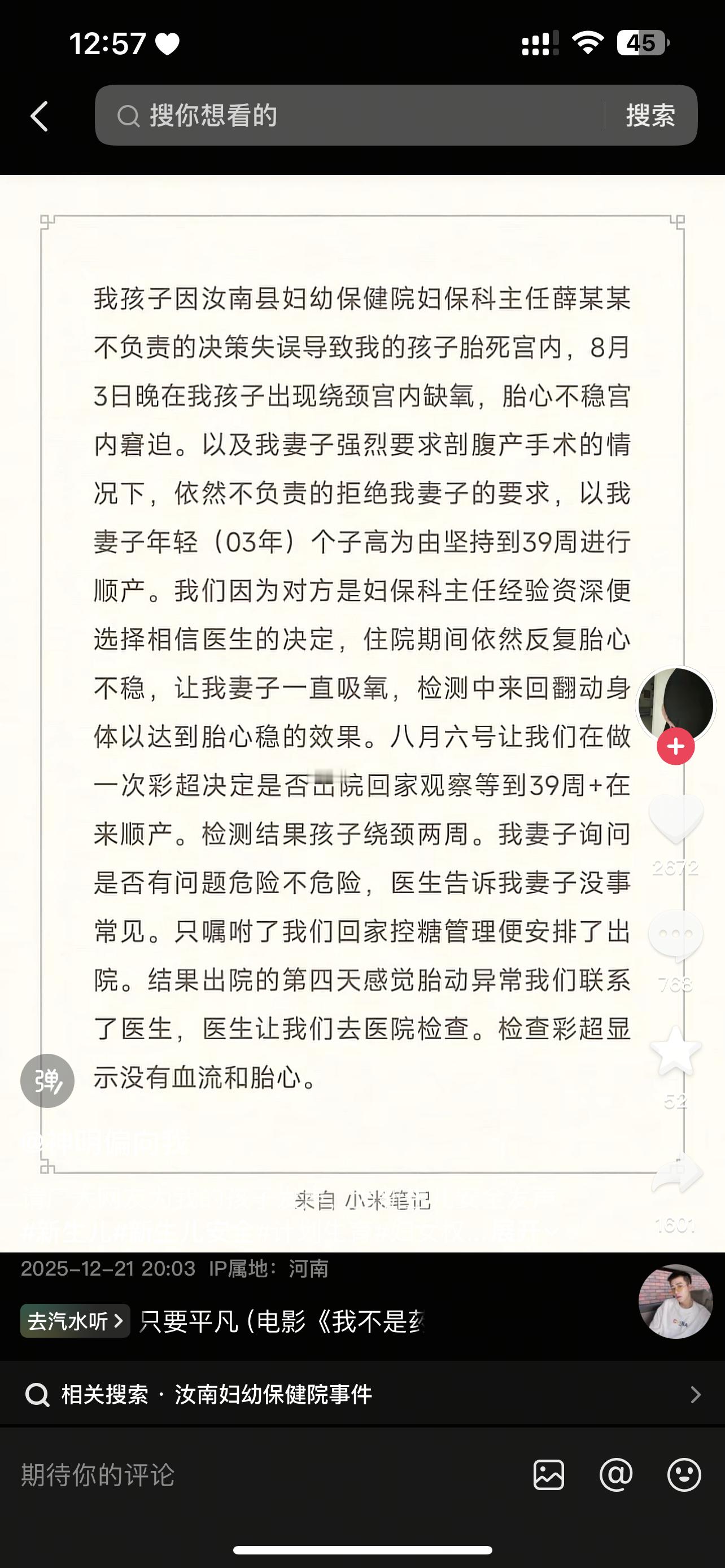 8月份发生的事03年孕妇快生产的时候胎死腹中有一张检查单发出来,有没有妇产医生看看这种情况是否是直接原因目前仅有当事人陈述,未见医院回应,先当个小作文看看