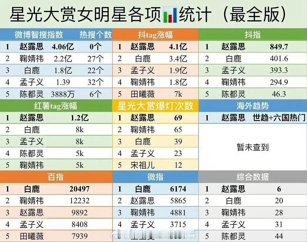 星光大赏数据昨天星光大赏数据女星前三:赵露思,白鹿,鞠婧祎男星前三:丁禹兮,刘宇宁,王安宇?王安宇的数据我看不懂,氪金排名很后,昨天各种梗也没怎么看见王安宇的身影呀,莫名那三个指数数据很高