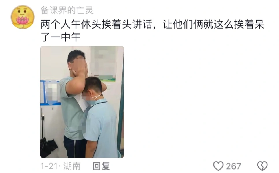 两个人午休头挨着头讲话,让他们俩就这么挨着呆了一中午