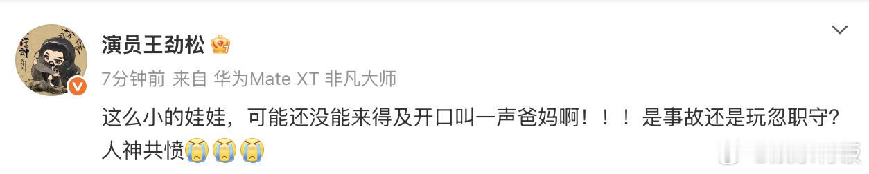 王劲松为小洛熙宝宝发声王劲松 小洛熙事件是事故还是玩忽职守 演员王劲松发文痛斥小洛熙宝宝相关事件,配文 “这么小的娃娃,可能还没能来得及开口叫一声爸妈啊!!!是事故还是玩忽职守?人神共愤”
