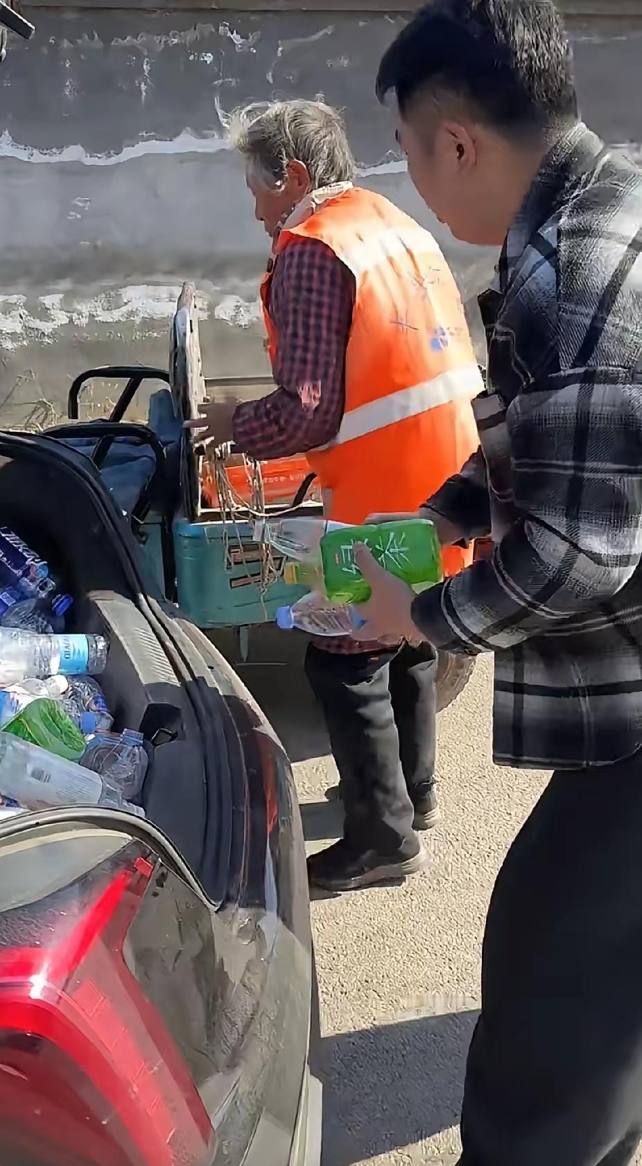 年轻男子突然拦住一位环卫老人,让环卫工老人将自己车上后备箱的垃圾拿走,接下来的画面,却让路人直呼感动了 这事儿刚开始看真能把人膈应到!环卫奶奶正蹬着三轮车慢悠悠干活,突然被个小伙拦住,张口就让她帮忙清后备箱的垃圾。奶奶二话没说应下来,还乐呵呵说这就是自己的活儿,顺手的事。 谁料小伙打开后备箱的瞬间,奶奶直接笑眯了眼!哪是什么垃圾,满满一后备箱全是攒好的空塑料瓶!小伙挠挠头说,平时喝完的瓶子都不舍得扔,就等着碰到环卫工人送出去。说着还麻利地帮奶奶把瓶子搬上三轮车。 路人刚开始还暗戳戳吐槽小伙不懂事,看到这幕全被暖到了。善良哪分大小啊,小伙的这份小心思,比直接给钱还戳心窝子。 换作是你,平时会把空瓶子攒起来送给环卫工人吗?