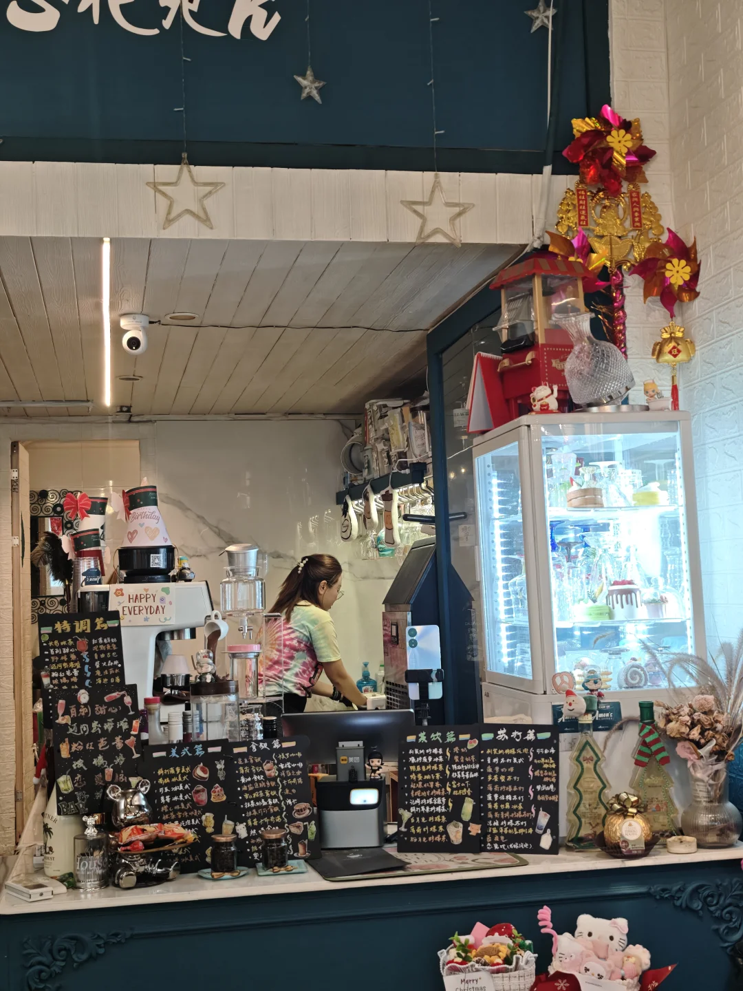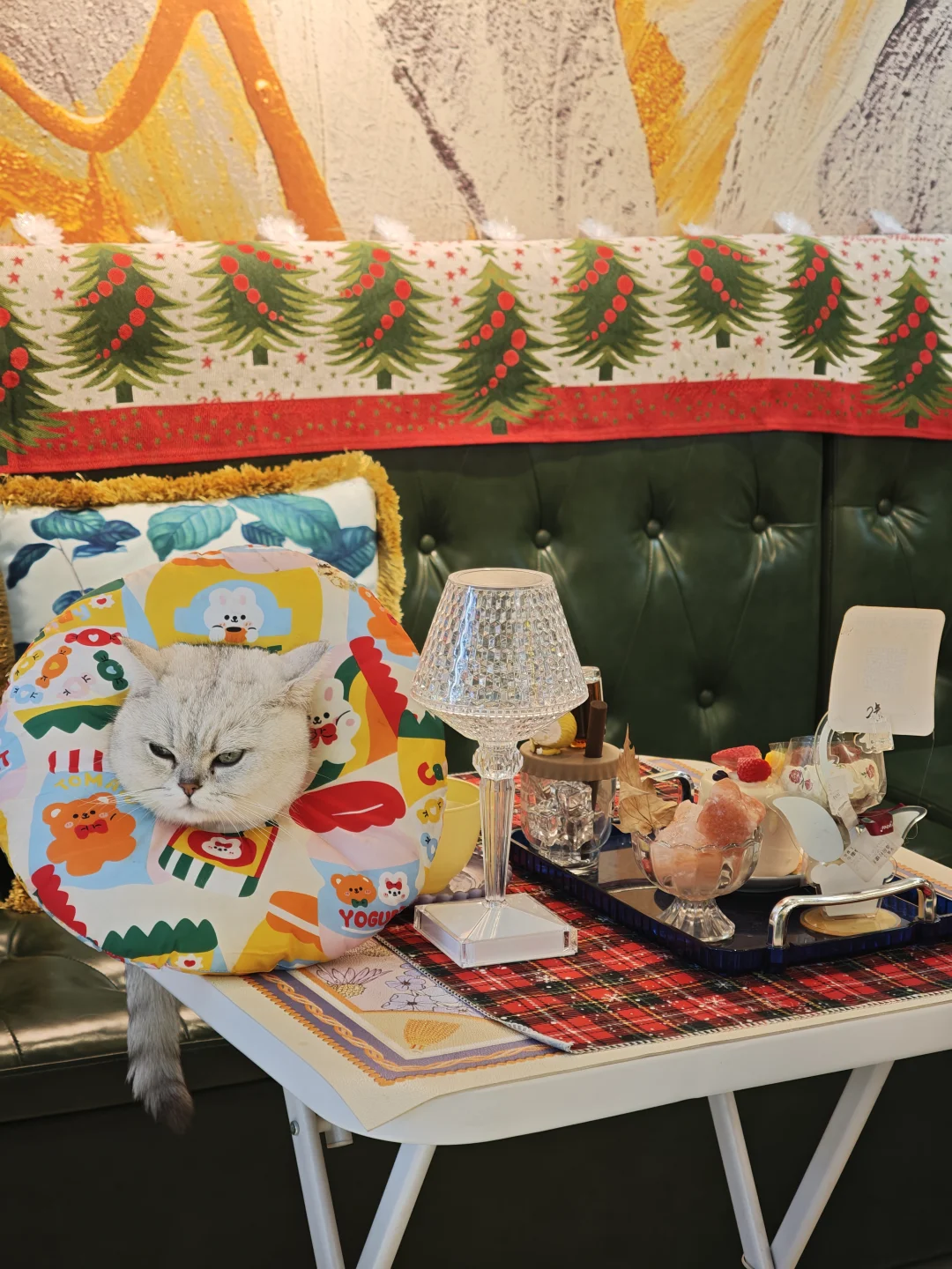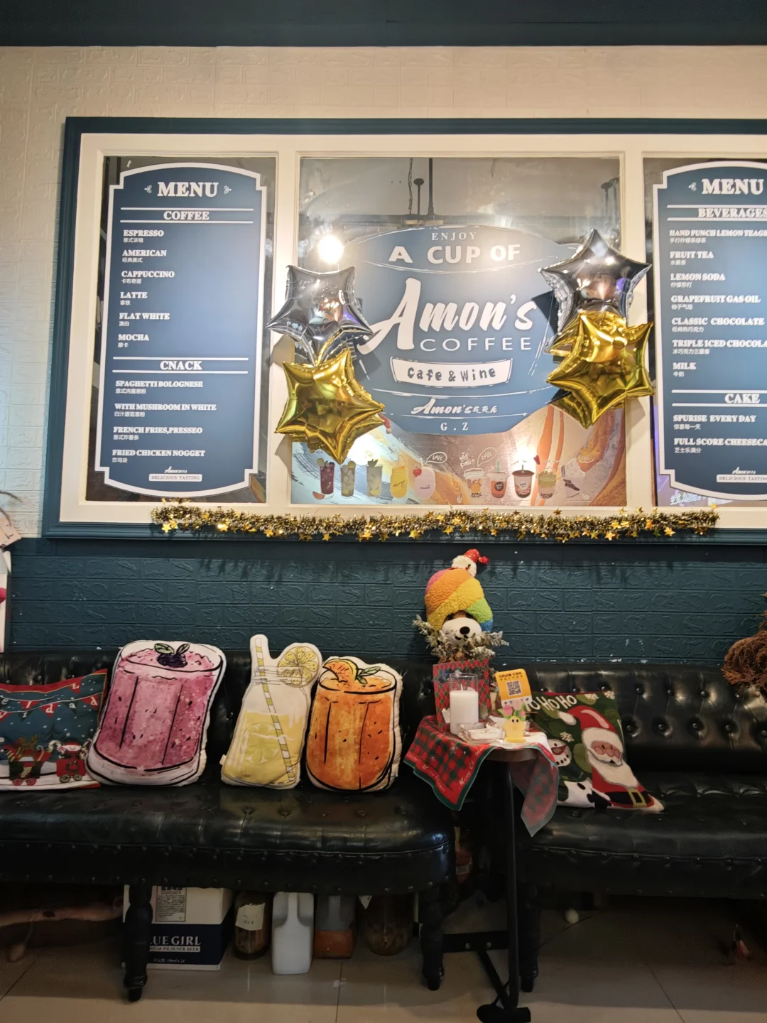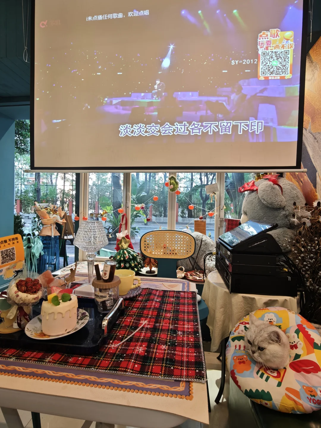 没想到江南西有个这种小店 真的圣诞节拉满了 小猫咪是银渐层也超级可爱🤩 老板服务很好 饮品第二件半价❤️ 环境挺舒服 有厕所 还可以点歌唱歌🎤(^ω^)ノ 圣诞节真的拉满了 江南西好多地方圣诞主题都已经有了 都是可以随手拍的嘞~