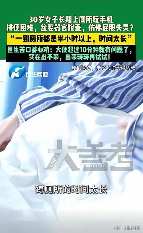 长时间蹲在厕所里看手机,原来居然有这么大的危险,以前真不知道这样的事情,现在看到这个信息之后,真让我感觉有些后怕,因为本人就有这个毛病,就喜欢在厕所里看手机,由于手机的内容很吸引人,有时看着看着就就把正经事给忘了,现在看来,这是危险的事情,以后必须改正,以防患于未然!