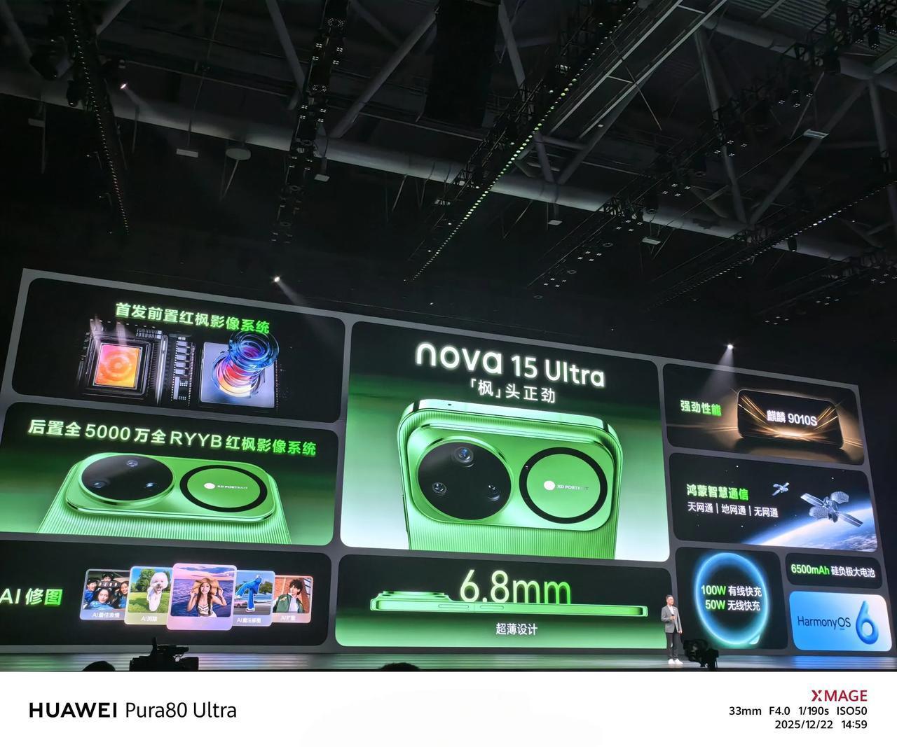 看了华为Nova15发布会后,发现是我唐突了,继续扯下行业遮羞布,加料不加价,2699元起!简单总结发布会价格/配置 华为 nova 15, 12+256——2699元 12+512——2999元 ◇161.87mm × 75.5mm × 7.2mm/196g± ◇边框高分子与金属复合材料 ◇麒麟8020 ◇6.7英寸OLED屏丨2412*1084分辨率丨120Hz高刷丨2160Hz高频PWM调光 ◇影像 前置 50MP 人像镜头 后置 50MP 主摄丨12MP RYYB长焦丨150万像素红枫一代原色镜头 其他配置 ◇6000mAh+100W ◇侧边指纹丨NFC丨红外丨星闪丨蓝牙6.0丨USB2.0丨IP65丨Wifi7+ 华为nova 15 Pro, 12+256——3499元 12+256——3599元 12+512——3899元 ◇163mm × 78mm × 6.9mm丨202g± ◇采用铝合金边框 ◇麒麟9010S ◇6.84英寸OLED屏丨2856×1320分辨率 丨1-120Hz LTPO自适应刷新率丨2160Hz高频PWM调光 ◇影像 前置 50MP 镜头丨150万红枫原色镜头 后置 50MP RYYB主摄 12MP RYYB长焦人像镜头 13MP RYYB超广角微距镜头 150万像素 红枫原色镜头 其他配置 ◇6500mAh+100W ◇其余跟标准版一致 华为nova 15 Ultra, 12+256——4199元 12+512——4499元 12+1TB玄武钢化昆仑玻璃:4999元 ◇163mm × 78mm × 6.8mm丨209g± ◇采用锦纤后盖和铝合金边框 ◇麒麟9010S ◇屏幕与Pro一致 ◇影像 前置 跟Nova15Pro一致 后置 50MP RYYB可变光圈防抖镜头 50MP RYYB潜望长焦镜头 50MP RYYB超广角微距镜头 150万像素红枫原色镜头 ◇6500mAh+100W有线+50W无线 ◇侧边指纹丨NFC丨红外丨星闪丨蓝牙6.0丨USB2.0丨IP68&IP69丨WiFi7+ 这下可尴尬了,都说内存存储涨疯了,结果Mate80系全降价,Nova15系加料不加价,香麻了 麒麟8020实际跟9020除了GPU少两个CU外,CPU降了点频率,没太大区别。而麒麟9010S跟9020同源,比Mate40和Mate60系强很多,续航方面感知最大 当然了,我是没想到,华为竟破天荒给Nova15Pro和Ultra前置首发红枫一代镜头,这可是Mate和P系列都没的待遇,一机双红枫。还有这是Nova系列首次支持 4.6Mbps 母带级无损音质... 怎么说呢,一般日常标准版足够了,影像主摄需求大的选Pro够用,如果影像重度用户,然后纠结Mate70系、Mate60系的,直接上Nova15Ultra,因为影像同档真的有点强了,最起码RYYB和可变光圈都独一档了。至于性能,劝你目前别看华为了...