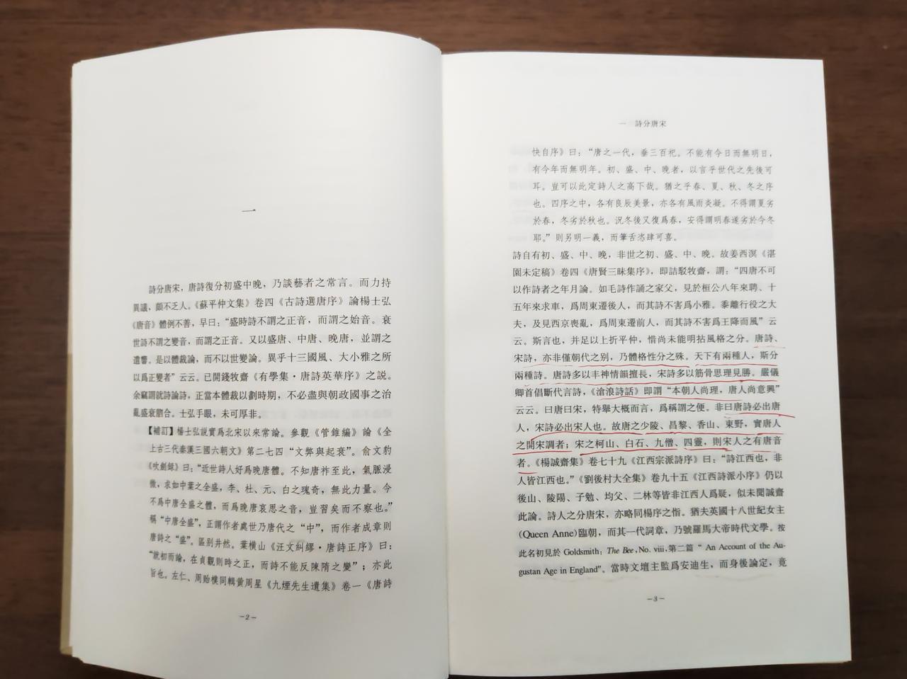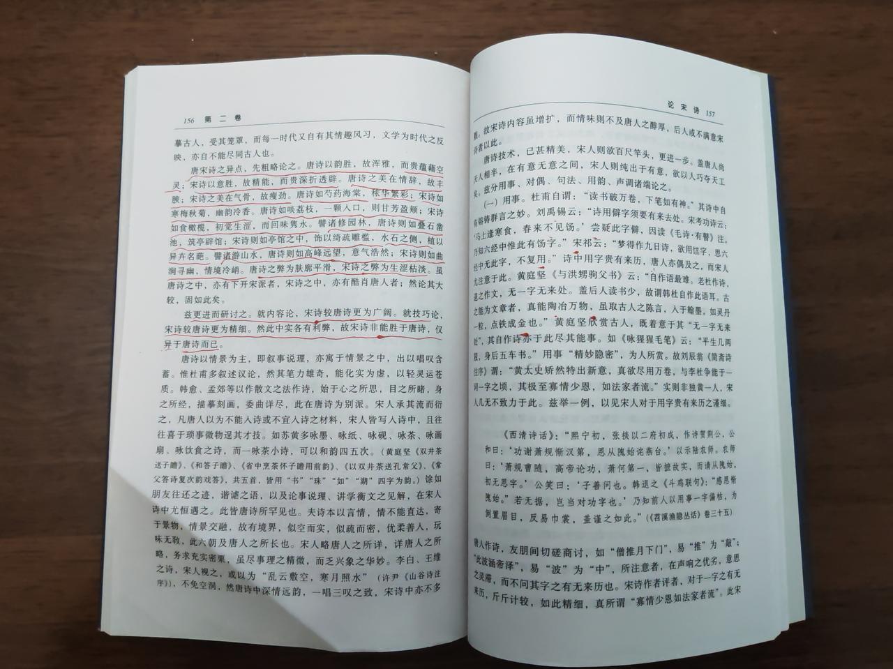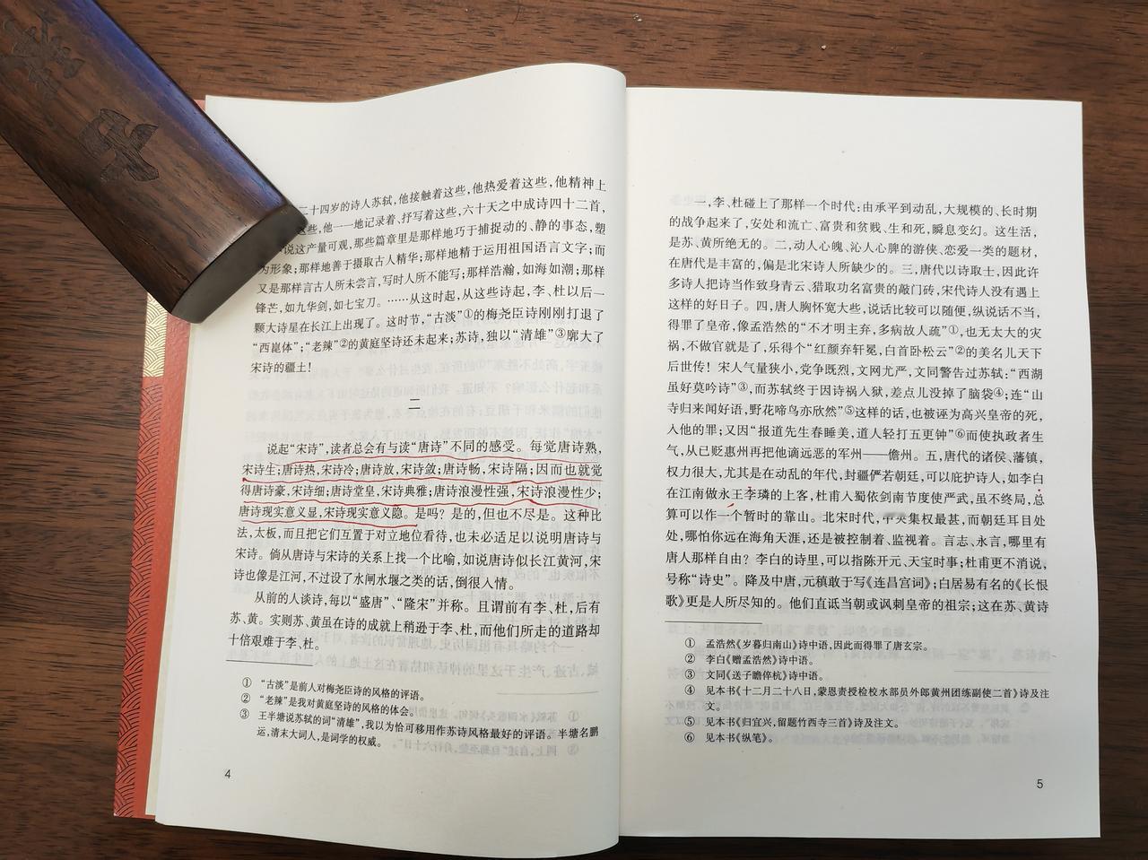 关于唐诗、宋诗的区别异同,历代以来,争议不少,就近现代而言,钱钟书、缪钺、陈迩冬等学人的论断颇具代表性。 钱钟书在《谈艺录》中说:,唐诗、宋诗,非仅朝代之别,乃体格性分之殊。天下有两种人,斯分两种诗。唐诗多以丰神情韵擅长,宋诗多以筋骨思理见胜。 缪钺《论宋诗》说,唐诗以韵胜,故浑雅,而贵蕴藉空灵;宋诗以意胜,故精能,而贵深折透辟。唐诗之美在情辞,故丰腴;宋诗之美在气骨,故瘦劲。唐诗如芍药海棠,秾华繁彩;宋诗如寒梅秋菊,幽韵冷香。 陈迩冬《苏轼诗词选注》说,唐诗熟,宋诗生;唐诗热,宋诗冷;唐诗放,宋诗敛;唐诗畅,宋诗格;因而也就觉得唐诗豪,宋诗细;唐诗堂,宋诗典雅;唐诗浪漫性强,宋诗浪漫性少;唐诗现实意义显,宋诗现实意义隐。 总体而言,钱钟书与缪钺的观点相对较近,尤其是关与唐诗、宋诗非朝代之别,是体格之分,二者意见极似。 钱氏说,曰唐曰宋,特举大概而言,非曰唐诗必出唐人,宋诗必出宋人。 所以他说杜甫、韩愈、白居易等,实唐人之开宋调者,宋代张耒、姜夔等,乃宋人之有唐音者。 缪钺说,虽唐诗之中,亦有下开宋派者,宋诗之中,亦有酷肖唐人者。 二人年龄相差不大,缪大钱六岁,不知是“异曲同工之妙”还是不约而同。 当然,前人亦有相似之说,如杨万里评江西诗派:“诗江西也,非人皆江西也。”