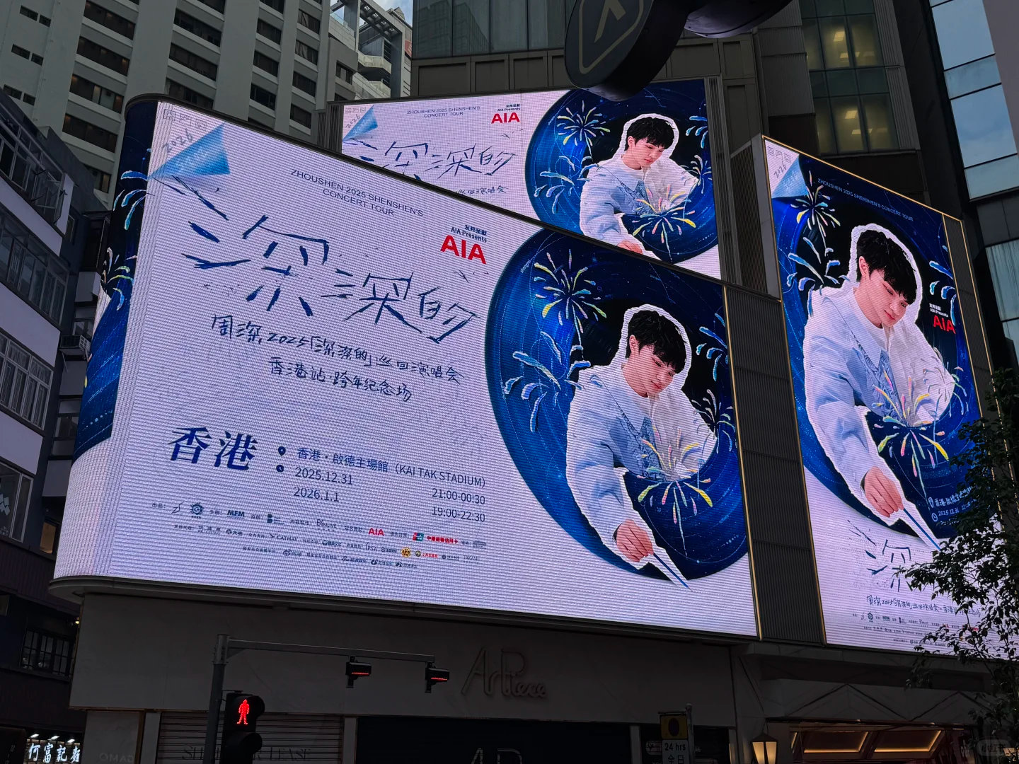周深排面从内地铺到香港 香港街头的应援海报太有冲击力,大屏连轴播放的画面藏着粉丝的热爱,周深用实力赢得两地观众喜爱,内地首位启德开唱资格就是最好证明!