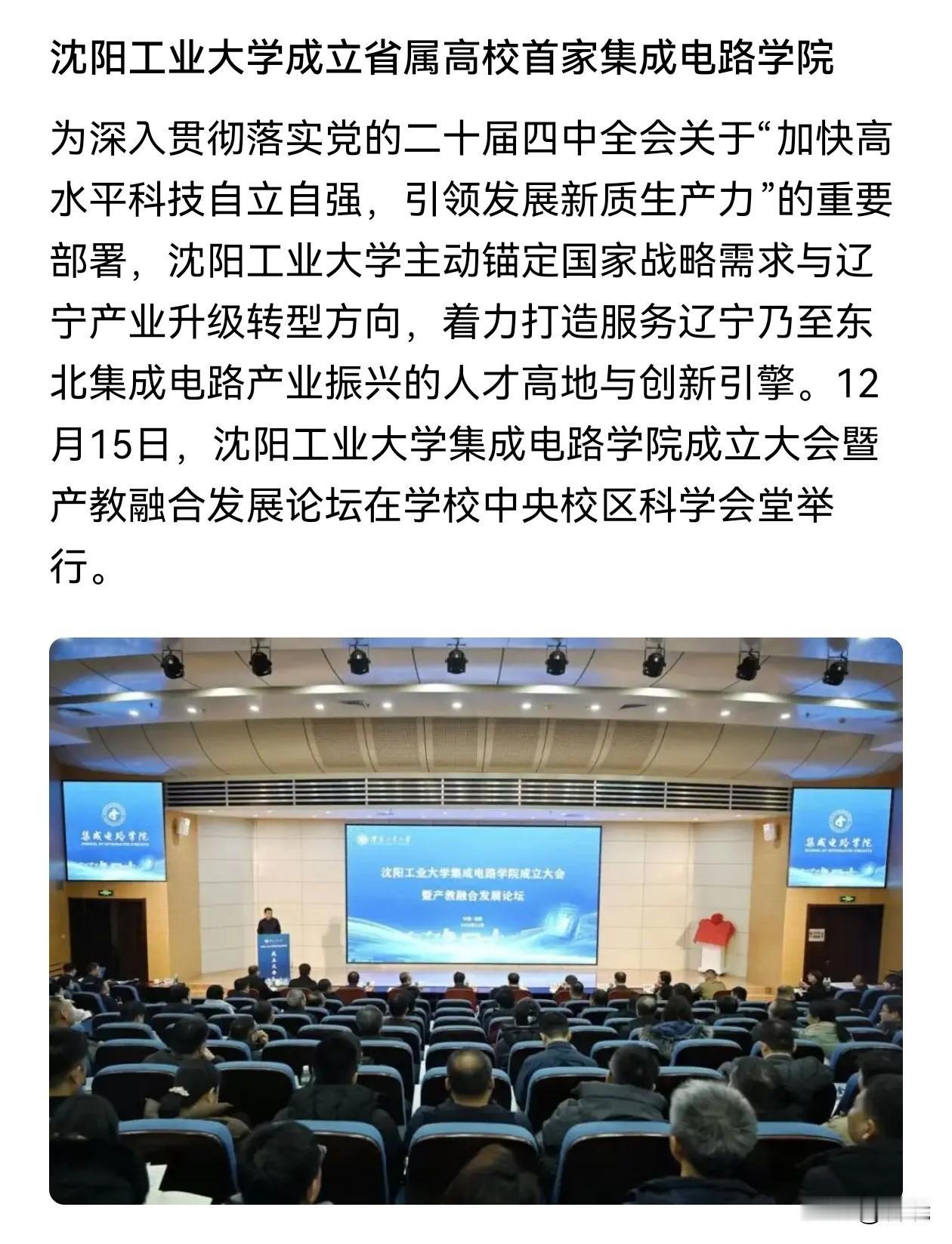 全国首个省属“集成电路学院”日前在沈阳成立。 汇集中科院等高校和多家国内半导体领军企业,这里将诞生沈阳的“DeepSeek”、“宇树科技”、“大疆”……。