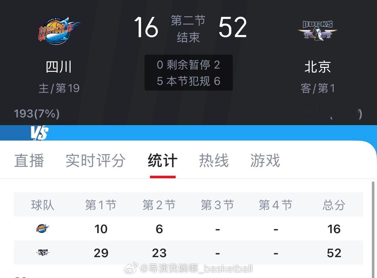 见证历史,四川男篮在今天对阵北京北汽的比赛中输给对手51分,单场只拿到46分排在