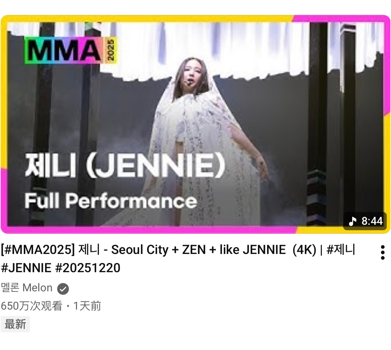 Jennie舞台播放量断层第一截至目前2025MMA舞台YouTube官方频道播放量jennie断层第一‼️🔥首支播放量突破600万的舞台视频🔥最快达成100万、200万、300万、400万、500万、600万播放量的舞台视频🔥点赞量最高的舞台视频