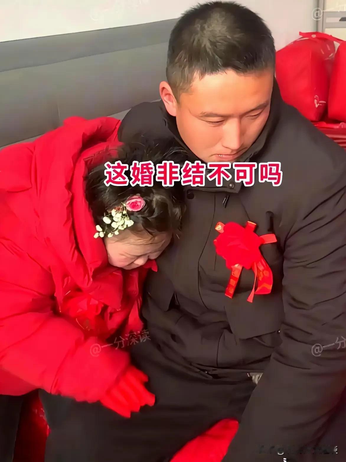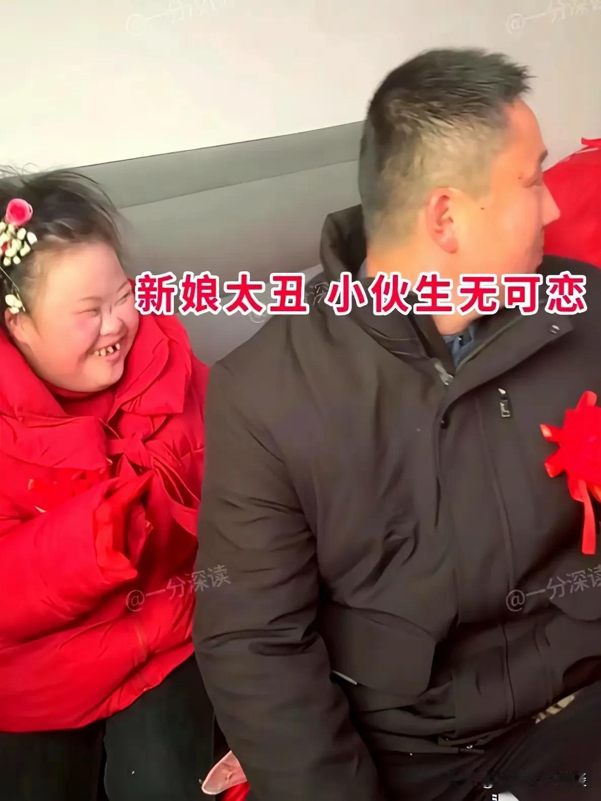 大喜的日子新郎郁闷的都快哭了。新郎30多了由于家境贫寒,拿不出那么多的彩礼,也没有💰买房买车,一直没能娶上媳妇。父母急着抱孙子,所以托人好歹给他儿子娶个媳妇。 这大喜的日子,父母满意了,新郎却要哭了,新娘长的太对不起新郎了,有点丑,新郎满脸不情愿,但又没办法,父母之命,媒妁之言,睡觉家里穷拿不出那么多钱娶媳妇呢,只能凑合凑合吧。 新郎心有不甘但也很无奈,主要是新娘感觉智力有问题一样。大婚当天的情景
