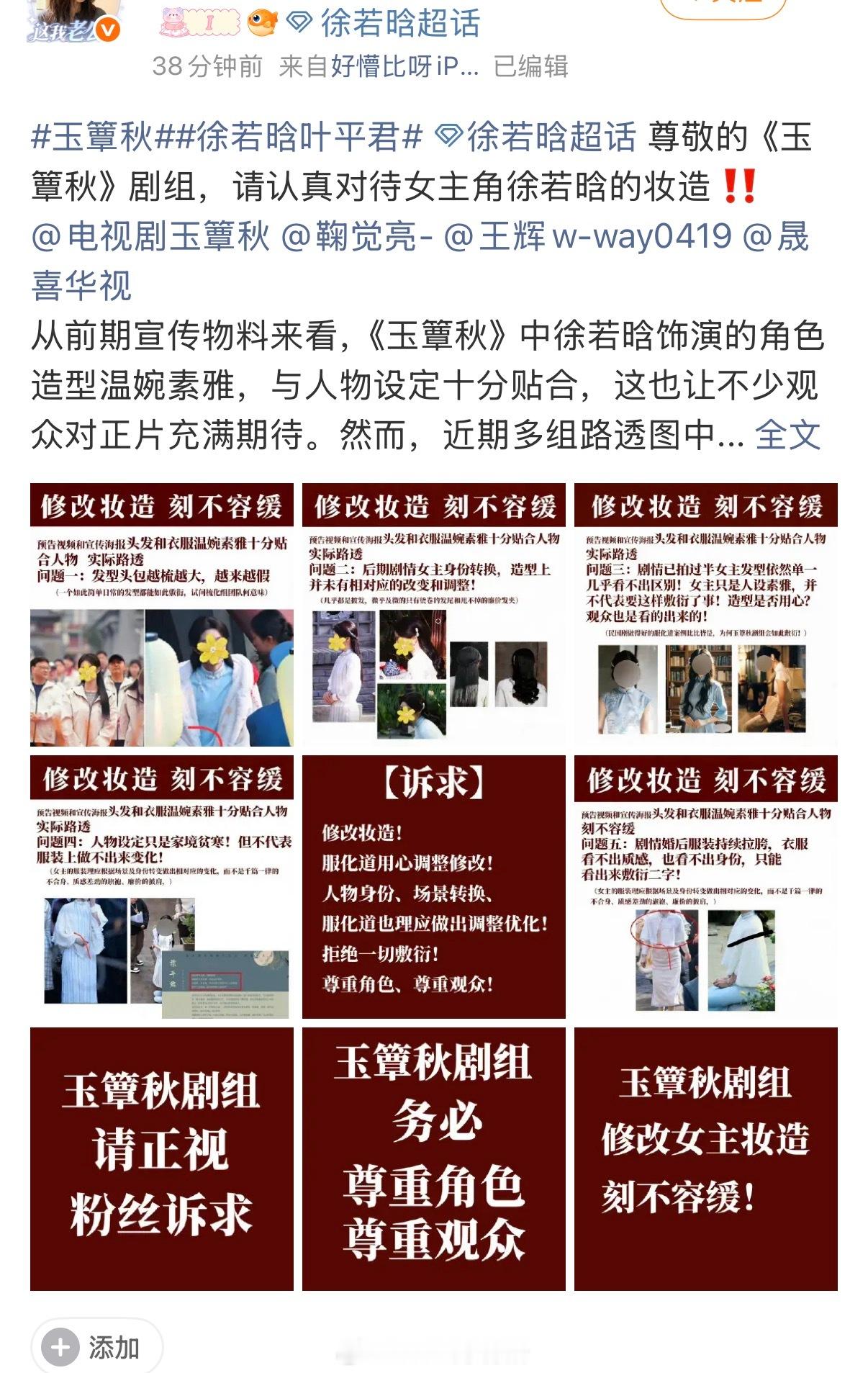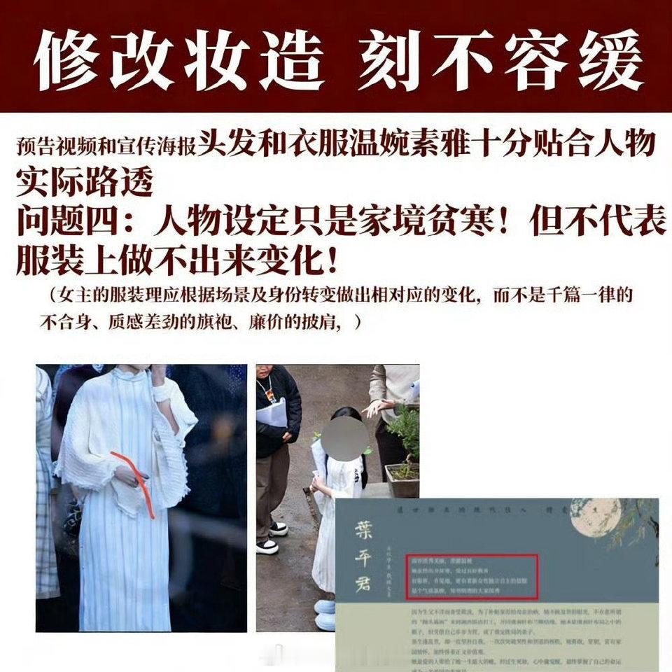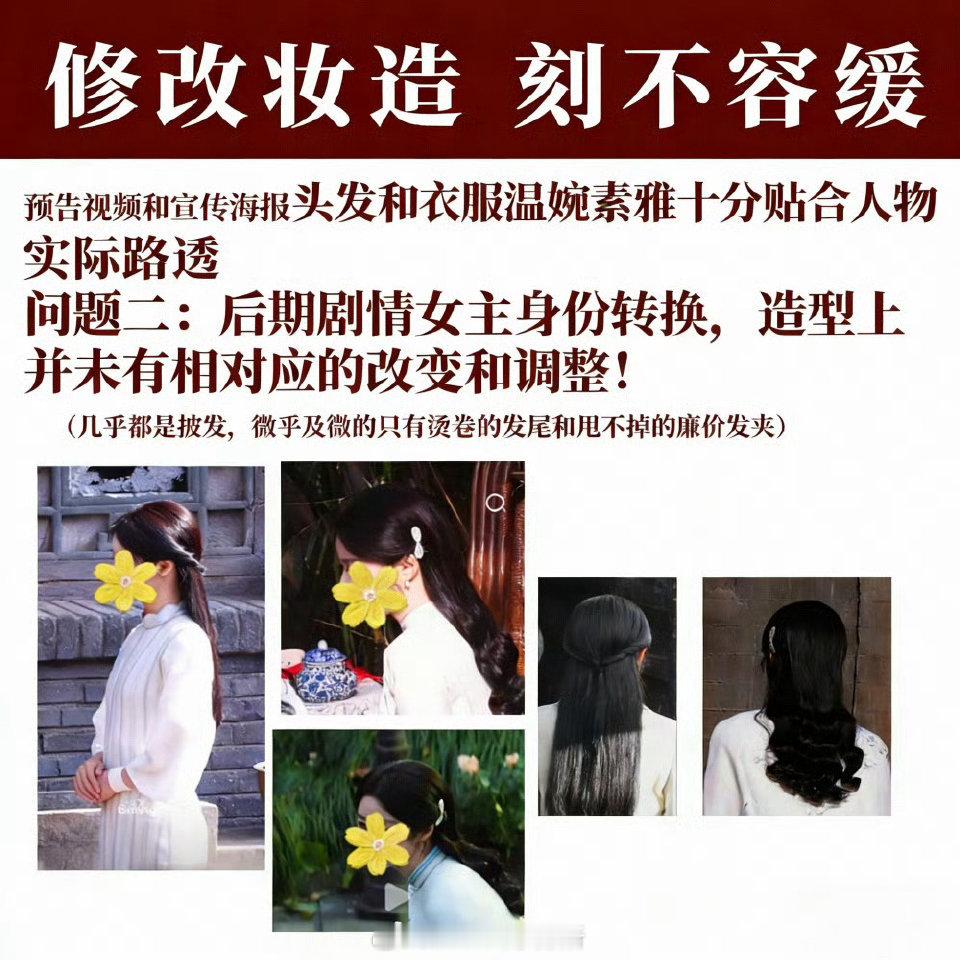 徐若晗家玉簟秋造型维权,开机53天,发型和服装都没有跟随身份调整,中分头顶没变过