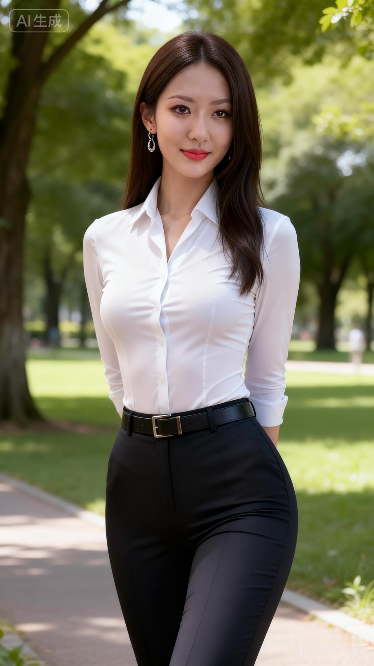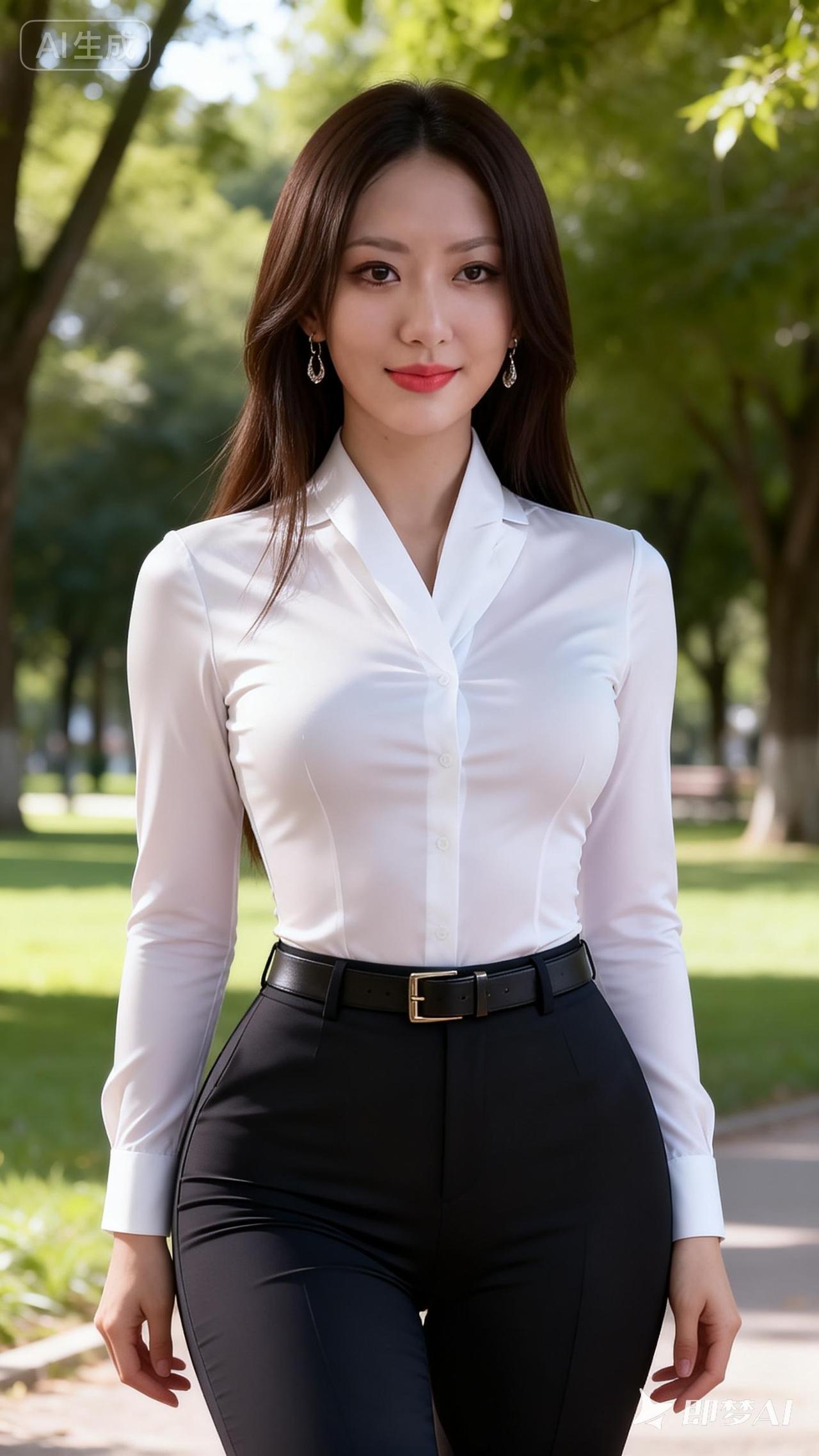 优雅职场风,白衬衫+黑裤,自信满满!