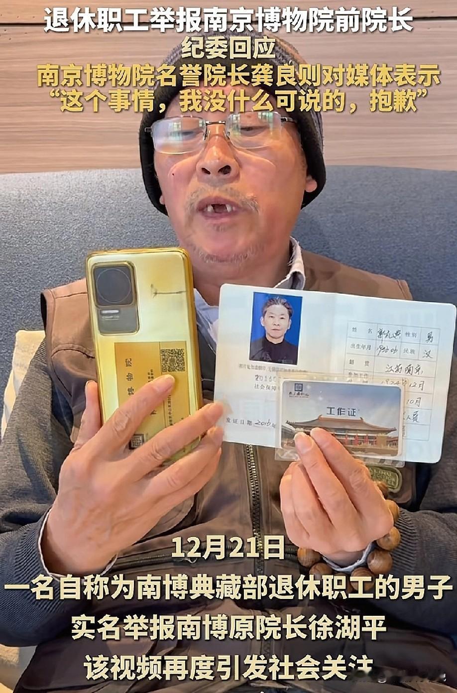 南京博物院前院长徐湖平现在应该已经睡不着觉了!柜子上的真假难辨的古董都落灰了,最讽刺的还是墙上的“湖平如镜”四个字! 原本想跳出来撇清关系,没想到直接被自己曾经的四十多名员工联名举报,这是什么概念啊?只能说明这位前院长干这些事不是一天两天了,其他老员工都坚定不移的坚守岗位,有人却背着大家挖墙脚! “平湖如镜”这回估计是不能如愿了,怕是就要“风高浪急”了!