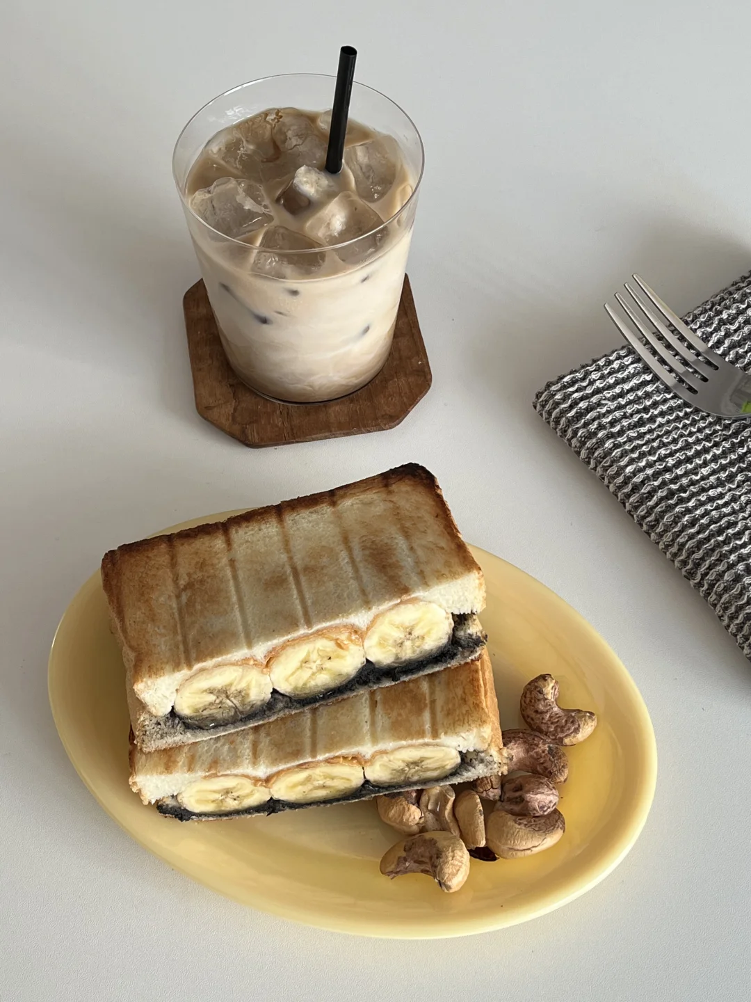一杯浓缩直接加到冰燕麦奶上 融合得很好