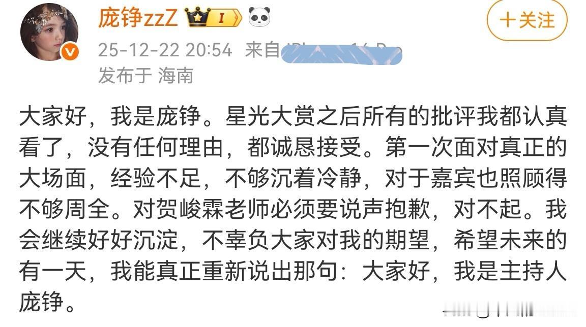 贺峻霖与庞铮在星光大赏颁奖礼上发生了什么事情了吗?庞铮怎么突然向小贺道歉呢? 庞铮这才开始接活动,她在《offer7》中表现还可以呀,小贺又是《offer7》的观察嘉宾。 庞铮说道:“对贺峻霖老师必须要说声抱歉,对不起。” 对此,你们怎么看呢?
