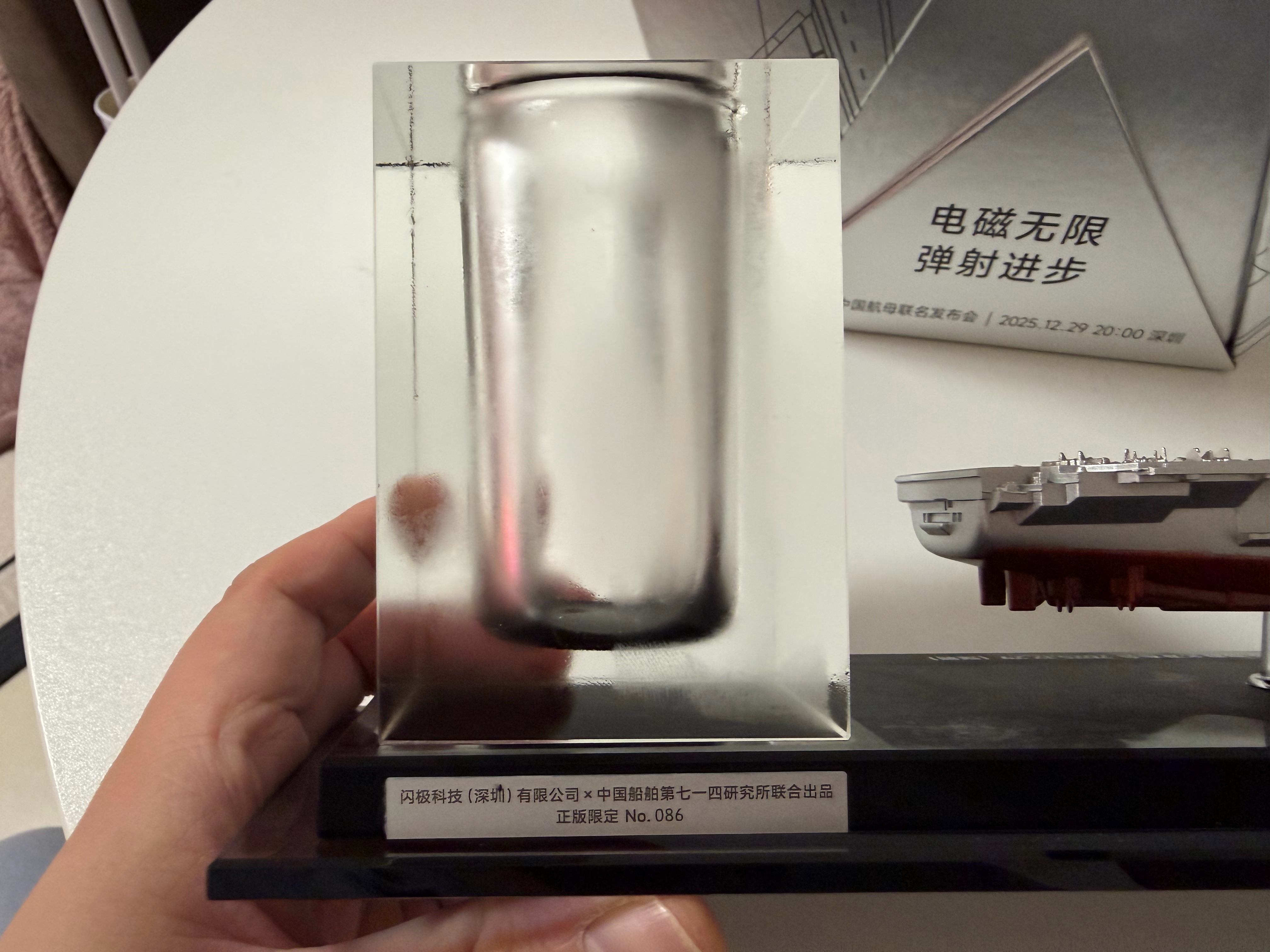 听说月底要发布一个重磅新品,今天直接给我寄了福建舰模型过来,这也太牛逼了,直接和中国航母联名,非常精致,每一个都有编号,我这个是86。