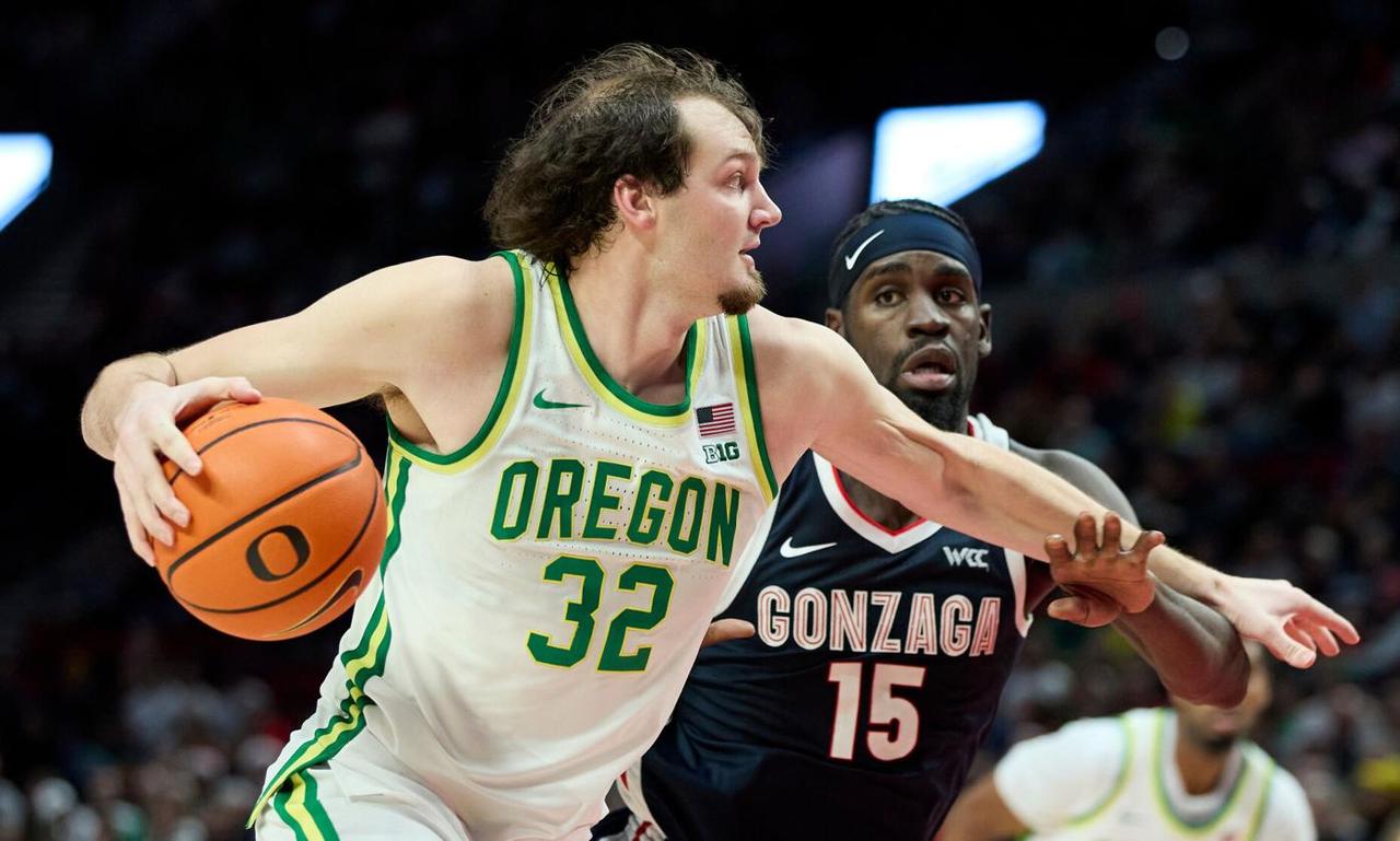 全美第7号种子冈萨加大学坐镇主场以91比82战胜了俄勒冈大学。本场比赛后,冈萨加大学的战绩提升到了12胜1负;而俄勒冈大学的战绩则是下滑到了6胜6负。 本场比赛中,俄勒冈大学的先发大五(红衫大四)中锋内特-比特尔(Nate Bittle)出场37分钟,投篮19中10,三分线外8中3,罚球5中5,得到了28分9篮板5助攻1抢断4盖帽的数据,还有1次犯规。 本赛季前12场,比特尔总共出场10次,场均出场27.1分钟,场均数据为15.1分6.5篮板1.9助攻0.6抢断2.1盖帽,还有1.4次失误和1.2次犯规,投篮命中率45.6%,三分命中率33.3%,罚球命中率81.5%。 比特尔出生于2003年6月,身高213cm,体重95kg,是2021届全美排名前30位的五星高中生。本赛季的整体表现其实还算不错,有一定可能性冲击次轮签,但是很大概率还是会成为落选秀。