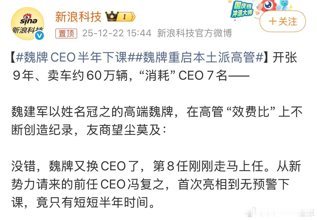 也就是说平均每任CEO在位1年多,然后卖不到10万辆车,就下课了魏牌汽车资讯大v聊车