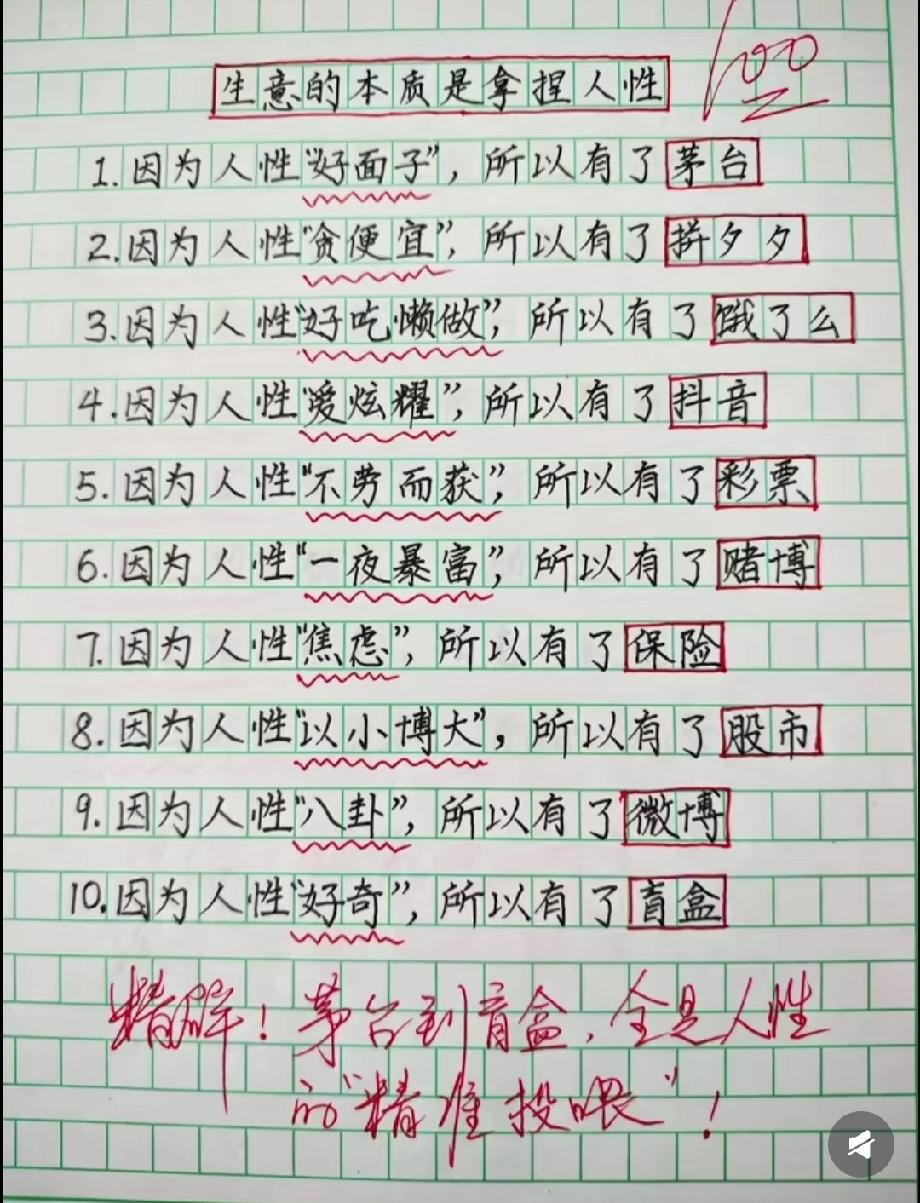 太精辟了!小学生作文点破生意本质,茅台到盲盒全是拿捏人性,看完服了