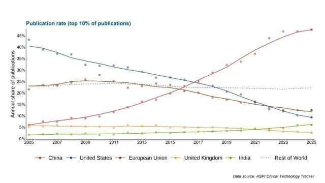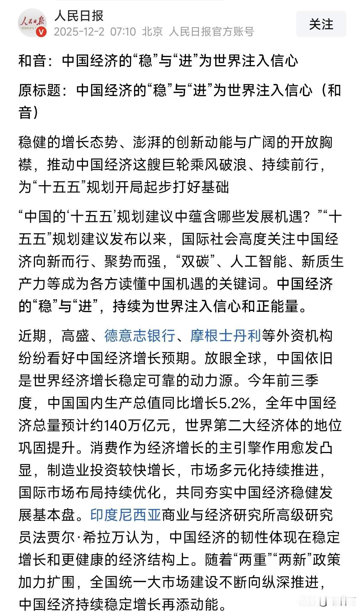 中国现在进入怪圈,外部竭尽全力宣传中国经济威胁论,国内却充满中国经济崩溃论。 从年初各种经济专家、大v宣传中国经济萧条,楼市确实不好,吓得大家都捂紧钱包不敢花钱。 国外可劲儿宣传中国经济冲击,想法子加税限制。 人民日报消息前三季度中国继续领跑主要经济体,增速达5.2%。 有人说外资撤资,中国经济发展动力不足,前景不明。 但根据ASPI 2025年关键技术追踪,北京在74个关键领域中位居66个前茅,而美国仅领先8个。 按ASPI说的这个主导了全球90%的关键技术,妥妥的科技强国。 话说都不敢消费了,物价是真便宜,尤其是牛肉,带骨牛肉炖起来真香,还不用担心拼接肉。