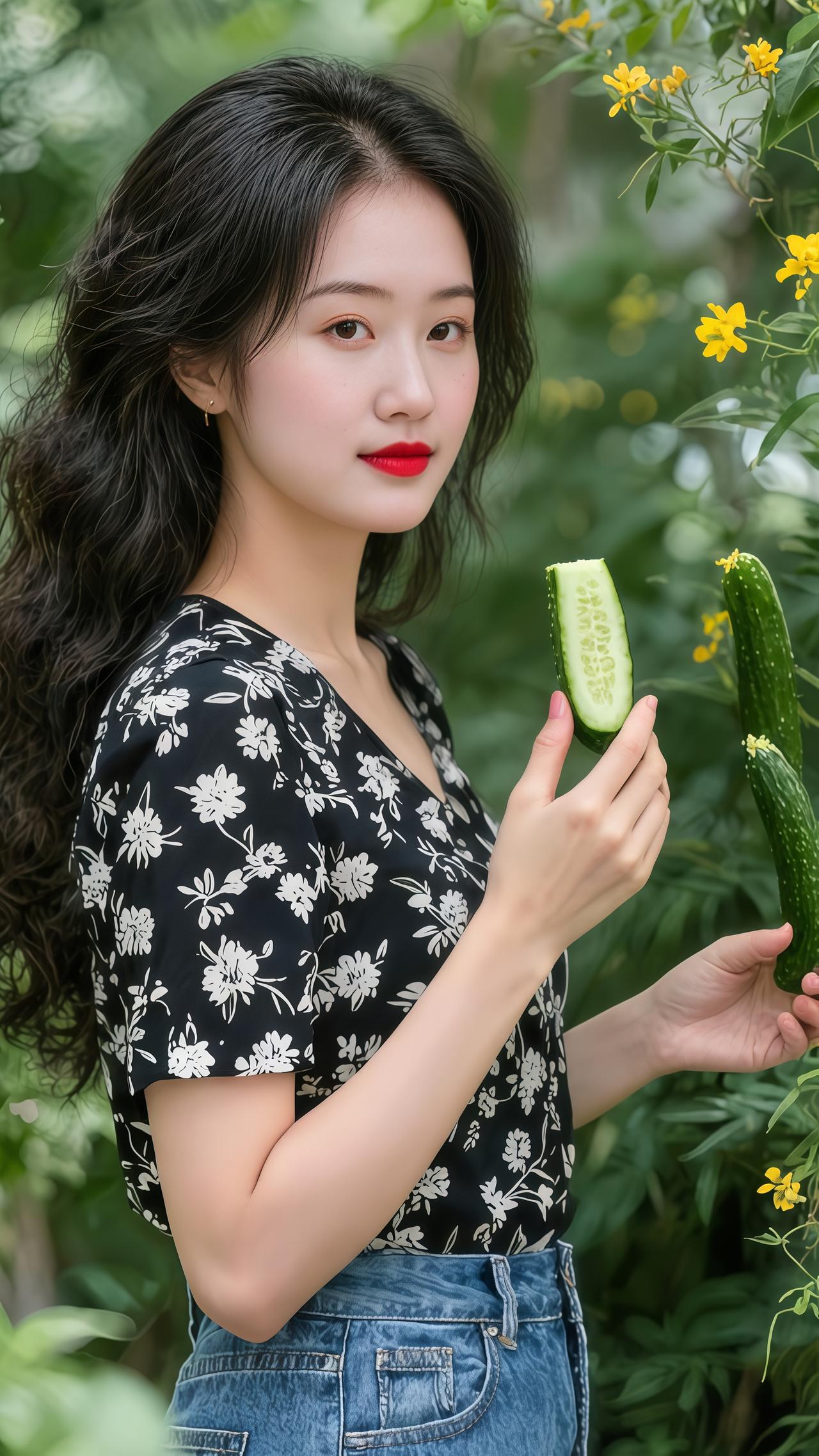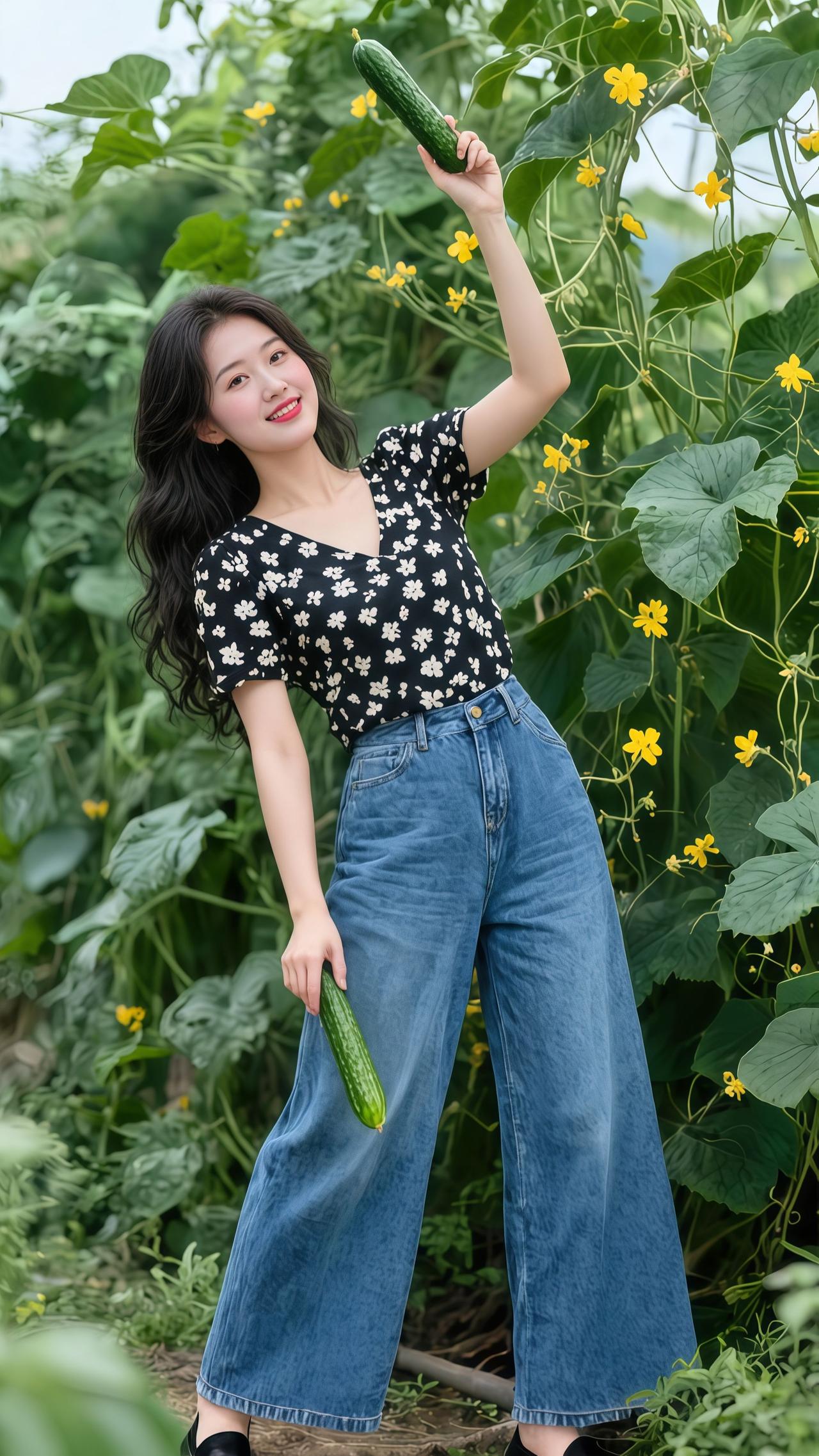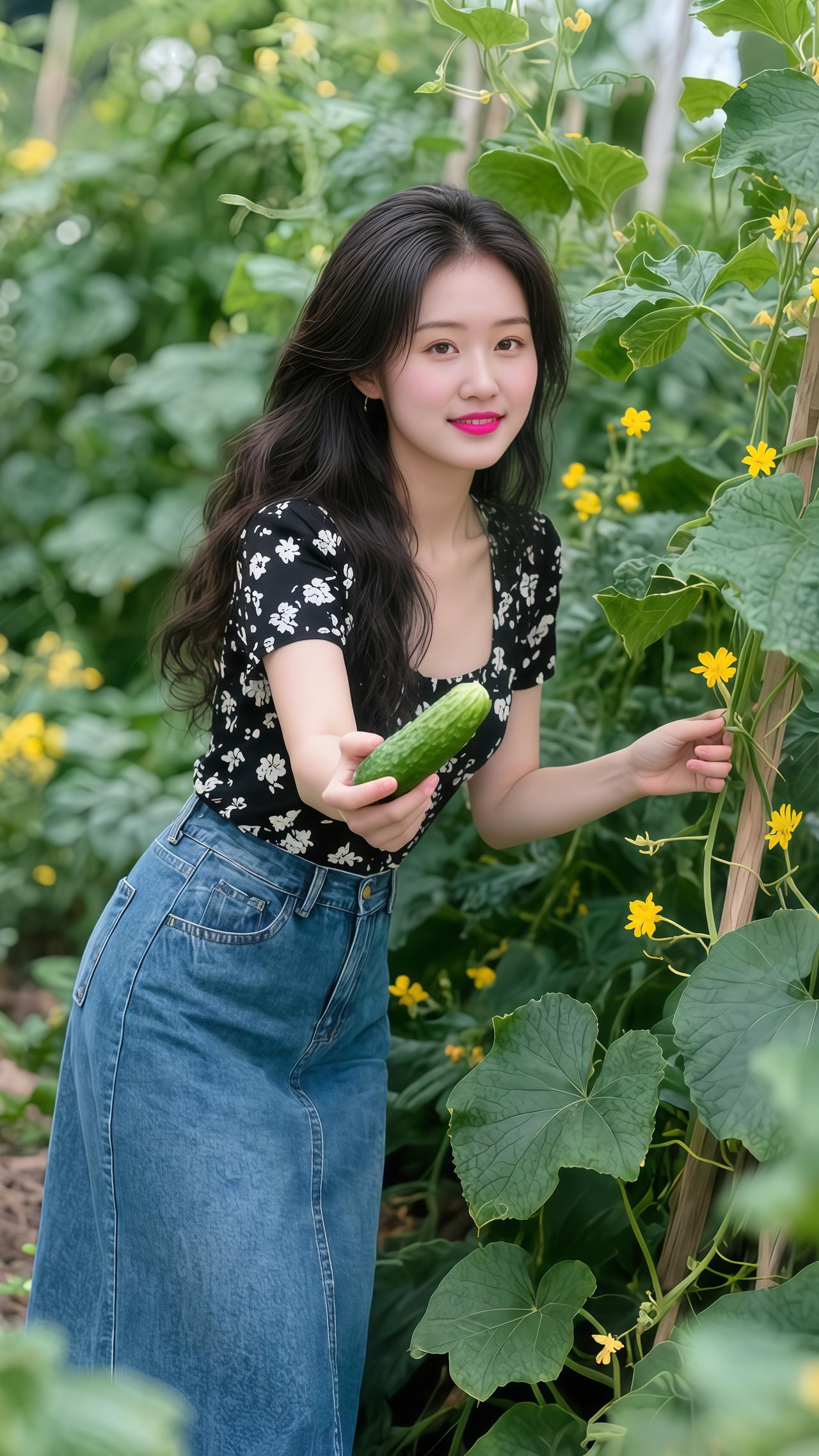 我的农村生活农村女孩田园风光摘黄瓜
