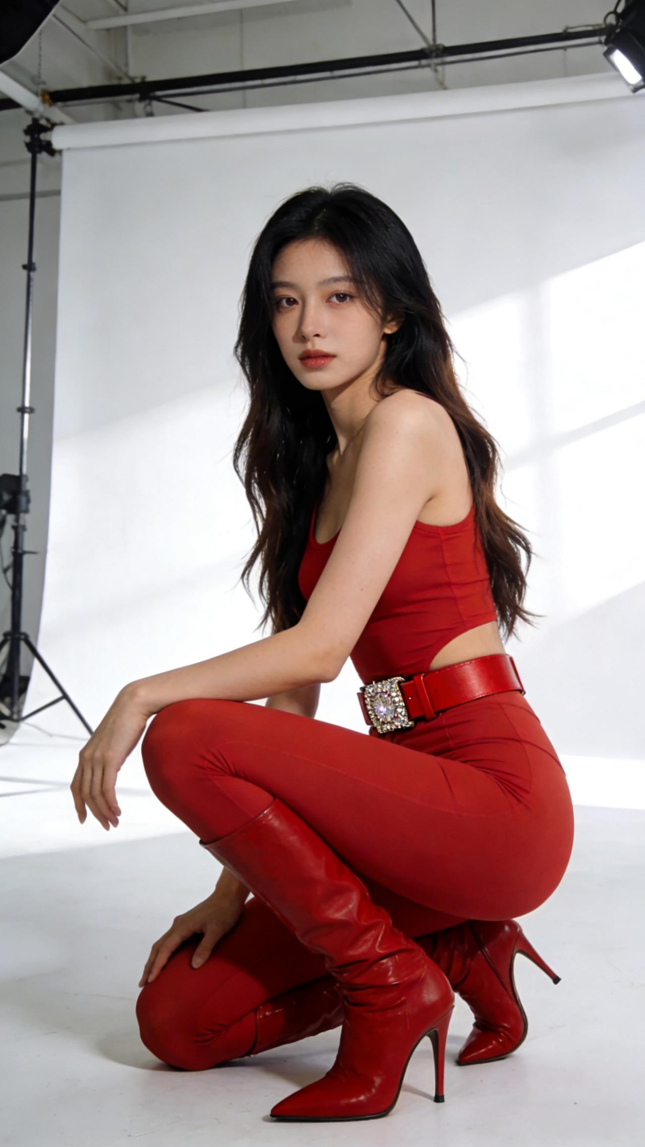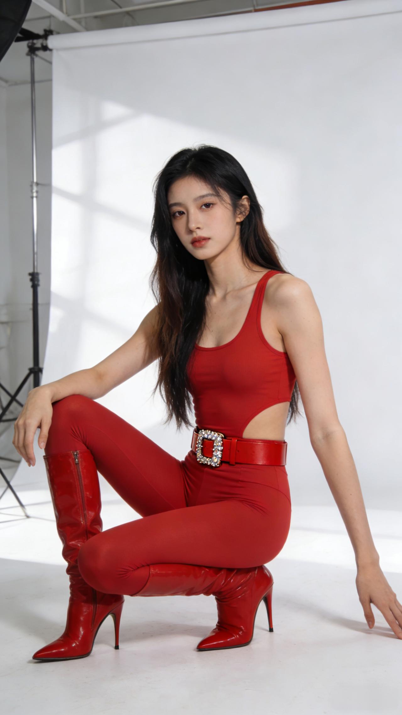 红衣女孩的梦幻时刻,柔美与力量并存。时尚穿搭